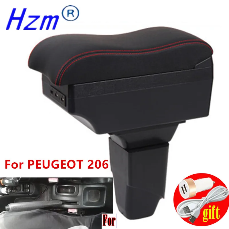 Для PEUGEOT 206 подлокотник коробка для PEUGEOT 206 интерьер Запчасти автомобильный подлокотник для модернизации, Запчасти коробка для хранения в автомобиле, аксессуары для ванной комнаты с USB светодиодный