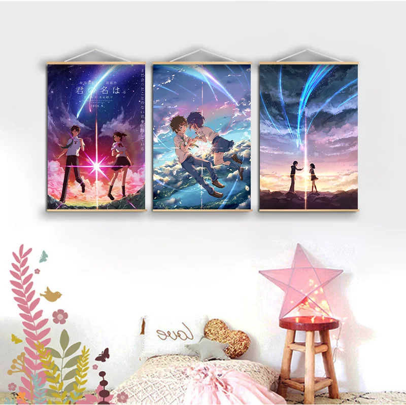 Аниме плакат Makoto Shinkai ваше имя настенное украшение для дома принты украшение для дома с твердой древесиной виток