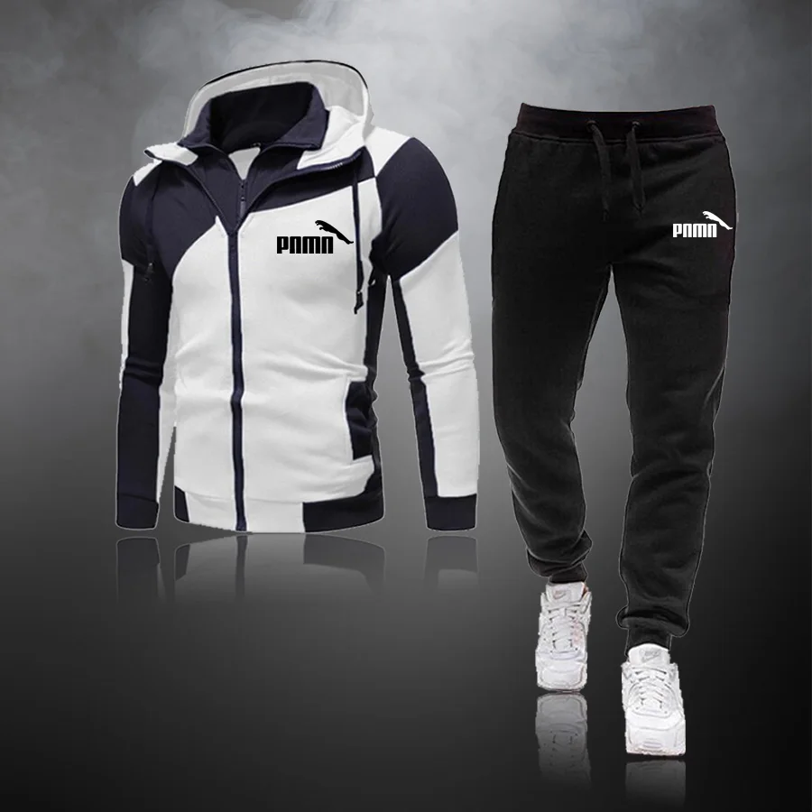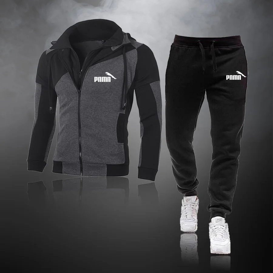 Мужской спортивный костюм с капюшоном, черный спортивный костюм с капюшоном и длинными рукавами, весна-осень 2021