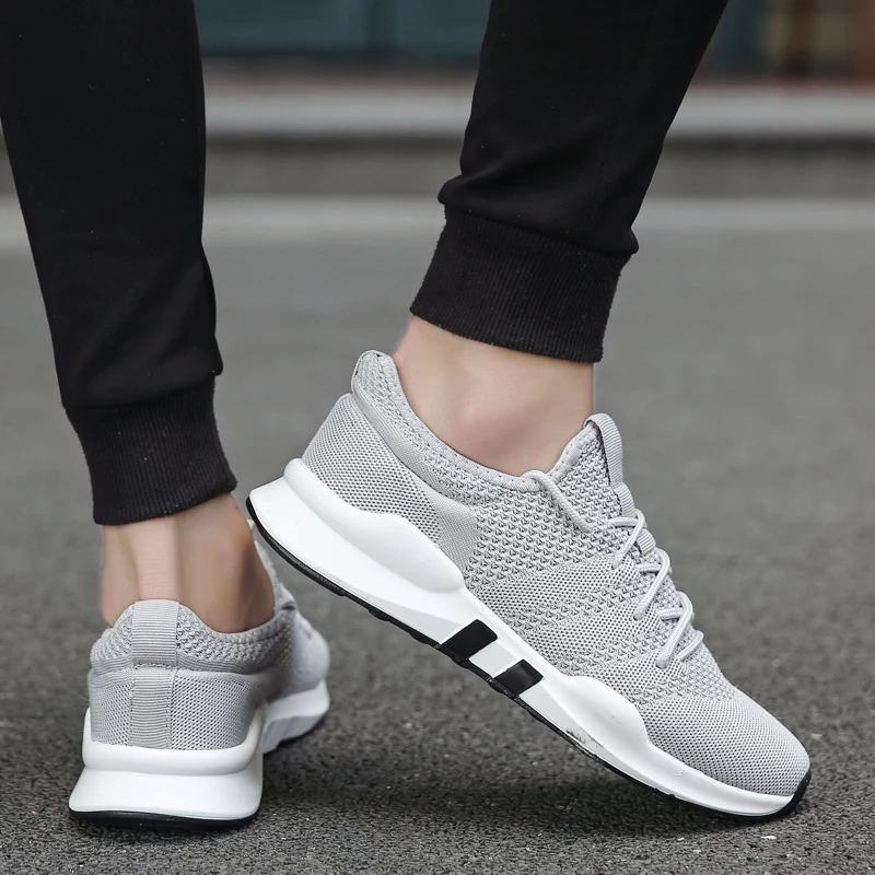 Кроссовки мужские, дышащие, на шнуровке, серые, белые, черные, красные