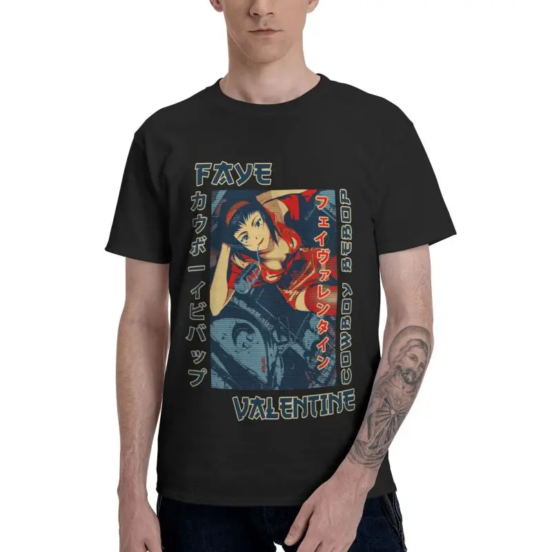 Японской манги Cowboy Bebop фей, футболки ко Дню Святого Валентина для мужчин с коротким рукавом 100% хлопковые футболки с персонажами из Аниме Манга футболка футболки-новинки подарок
