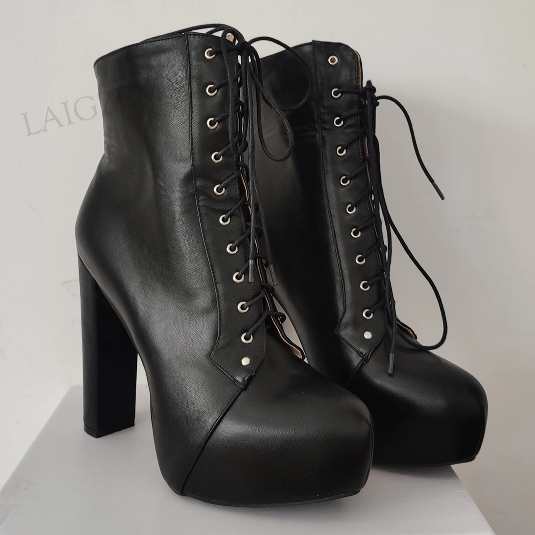 LAIGZEM/женские ботильоны на платформе ботинки на Высоком толстом каблуке со шнуровкой Женская обувь из искусственной кожи Большие размеры 40, 44, 45, 52