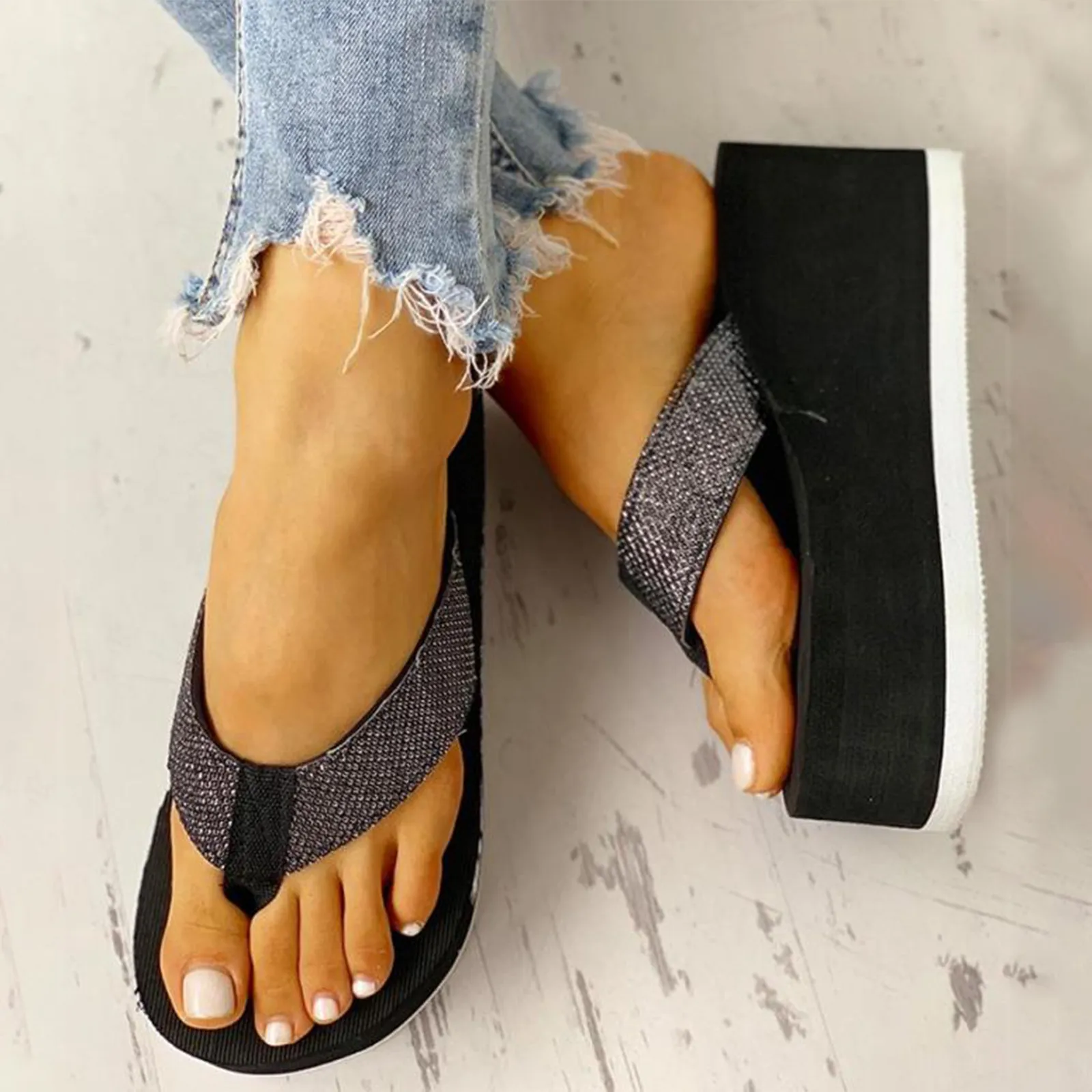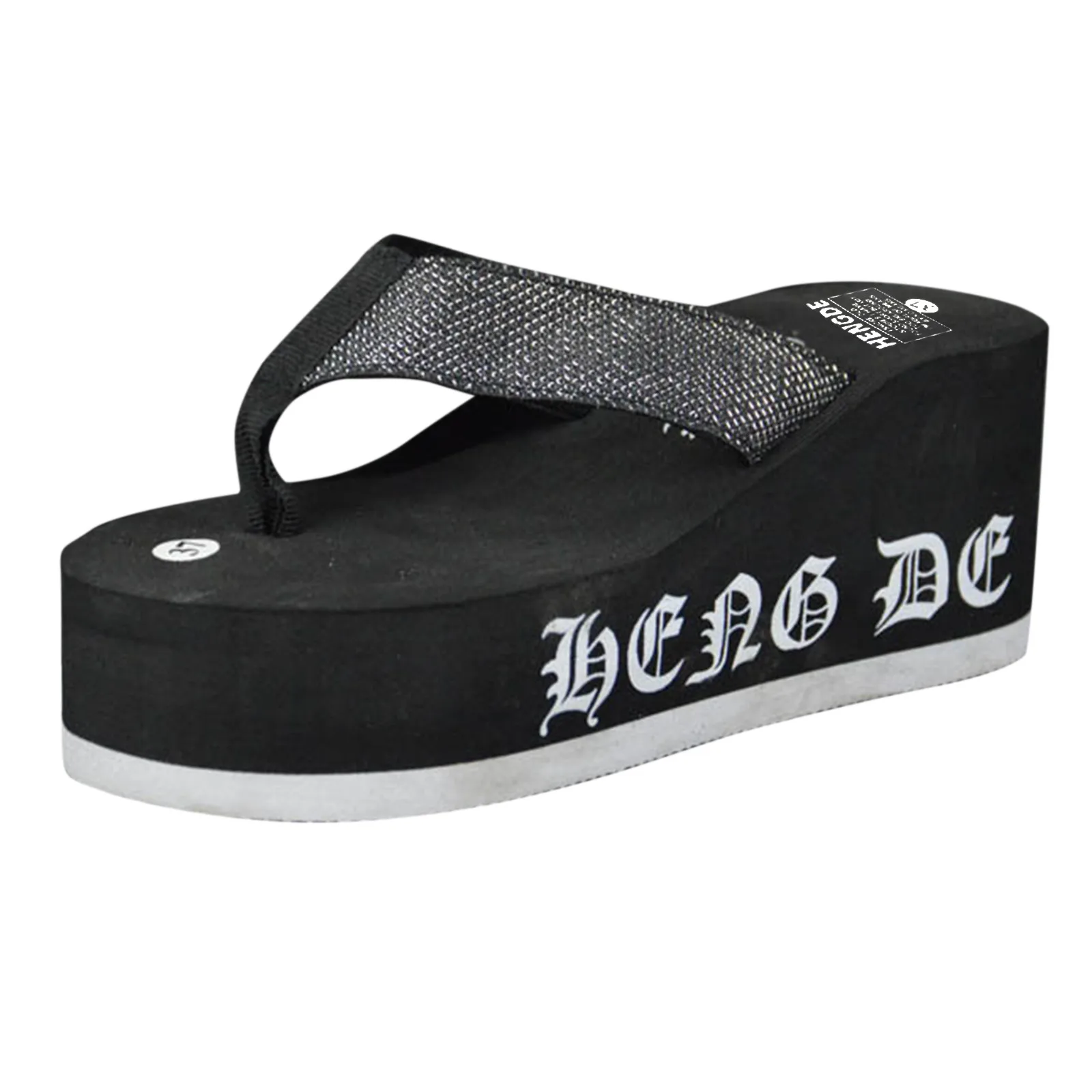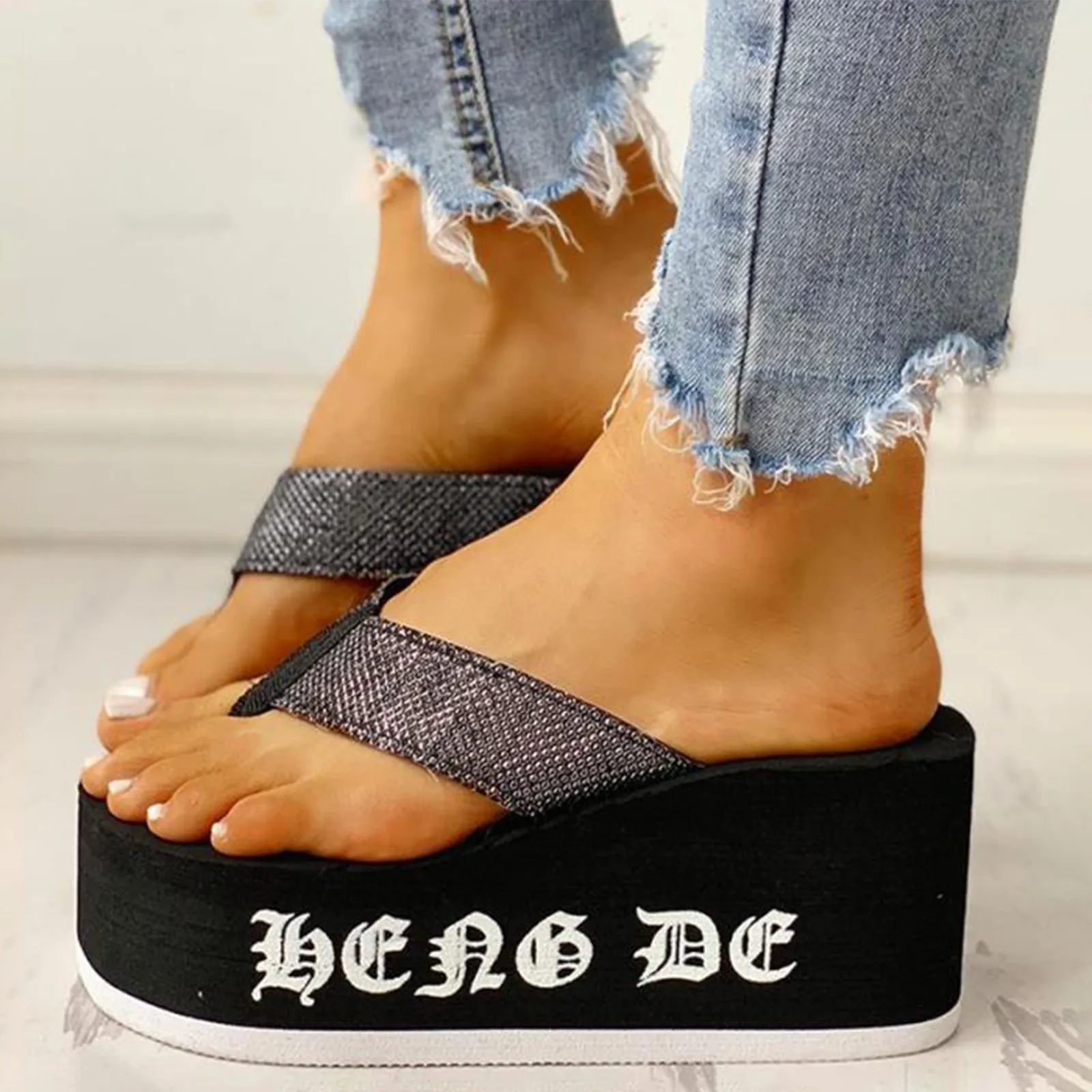 Шлепанцы женские на танкетке, Нескользящие пляжные сандалии на высоком каблуке, однотонные тапочки, летняя обувь