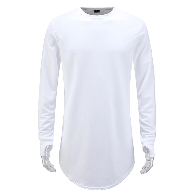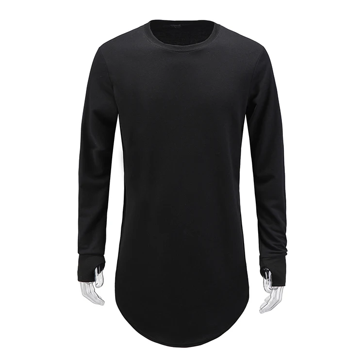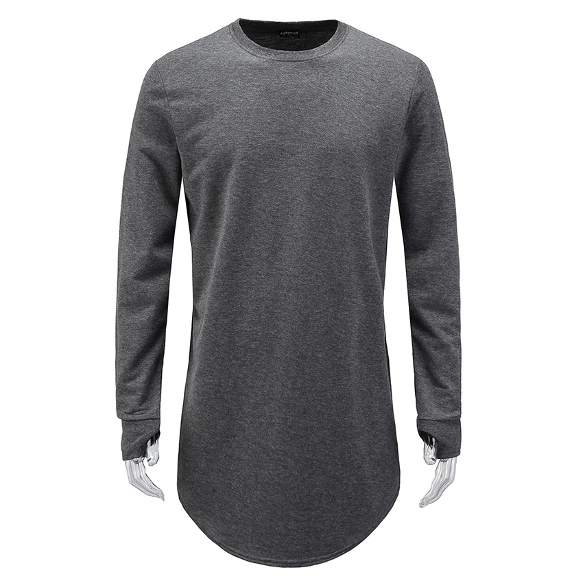 Футболка мужская с длинными рукавами, базовая хипстерская рубашка с отверстием для большого пальца, одежда в стиле хип-хоп, круглый воротник, однотонная уличная одежда, новинка
