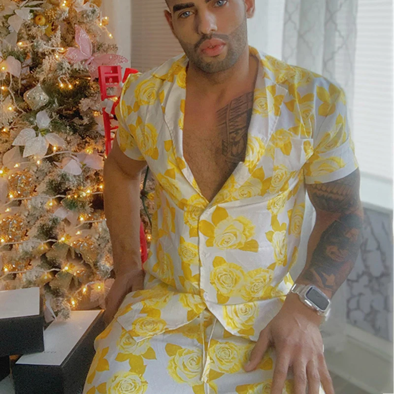 Мужские комплекты, гавайская рубашка, Модный комплект с принтом и шортами с коротким рукавом, мужские летние повседневные пляжные шорты, костюм, одежда