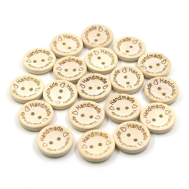 Деревянные пуговицы для украшения одежды, декор свадьбы, надпись Handmade Love, сделай сам для скрапбукинга, аксессуары для шитья, 50100 шт.