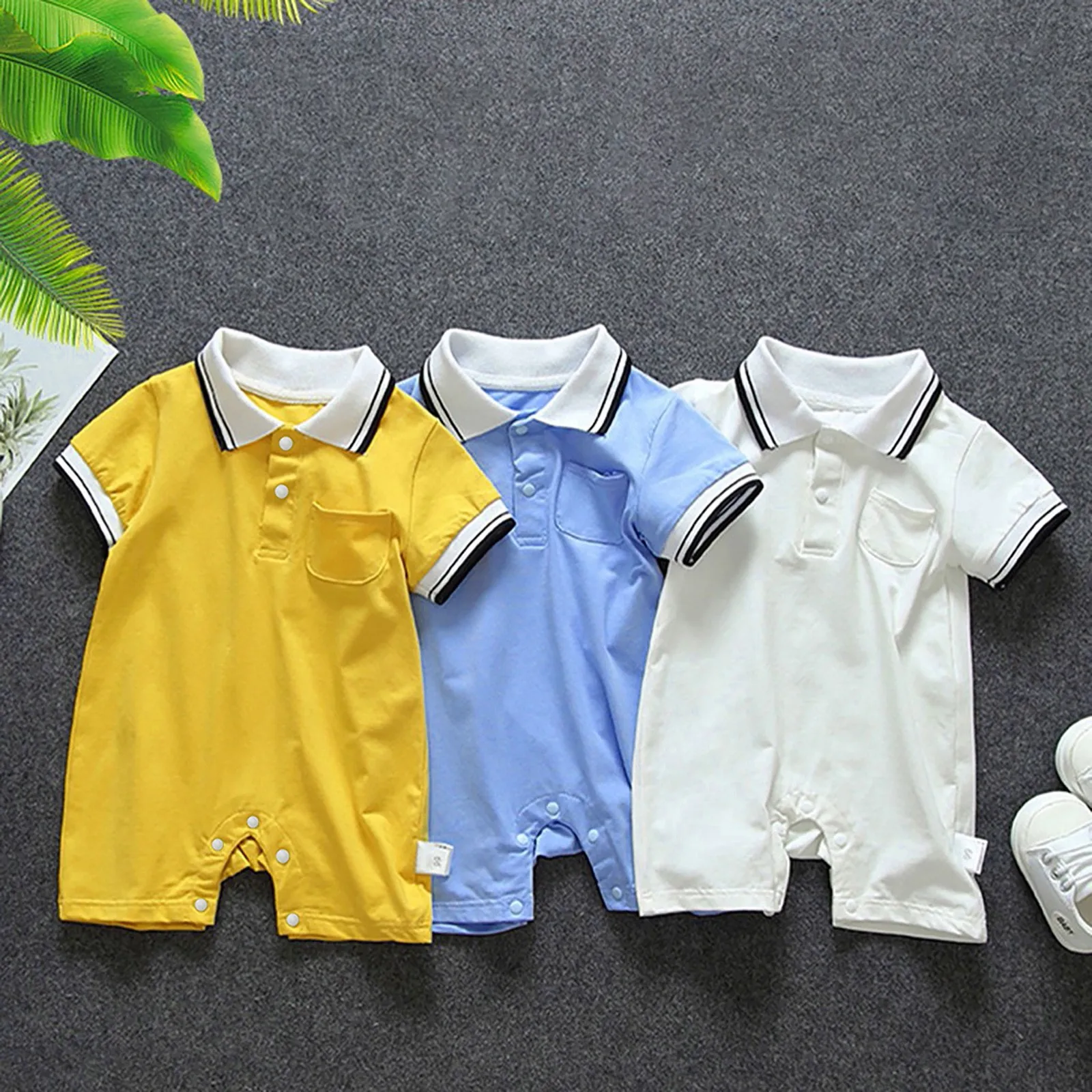 Комбинезоны с короткими рукавами и отложным воротником и карманами для маленьких мальчиков и девочек
