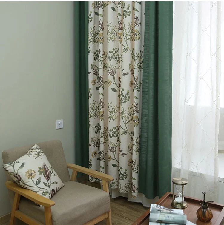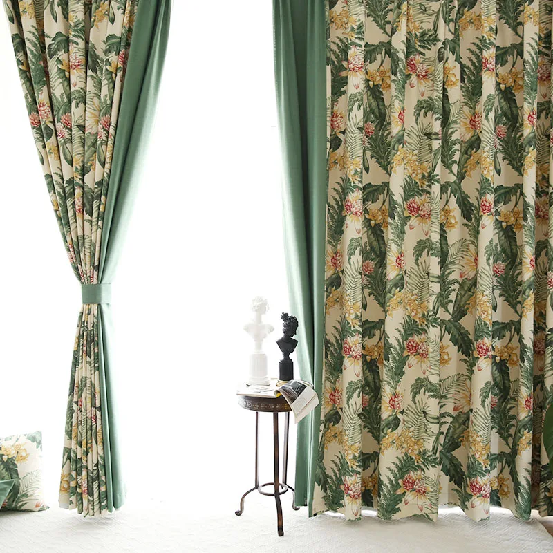 Затемняющие шторы из полиэстера и хлопка, с цветочным принтом