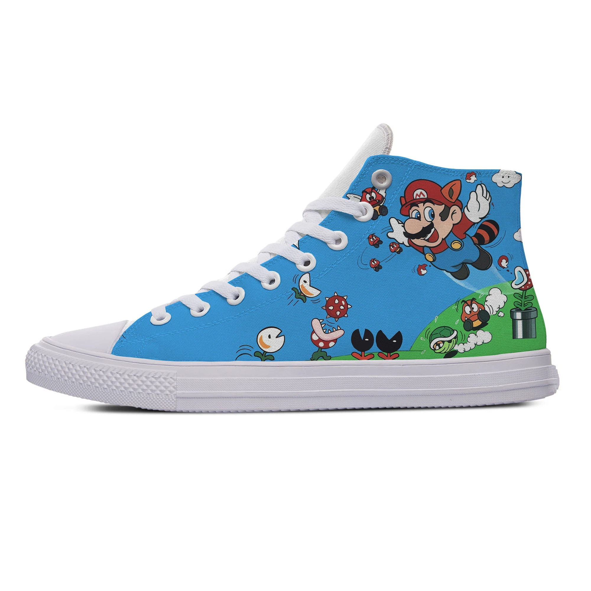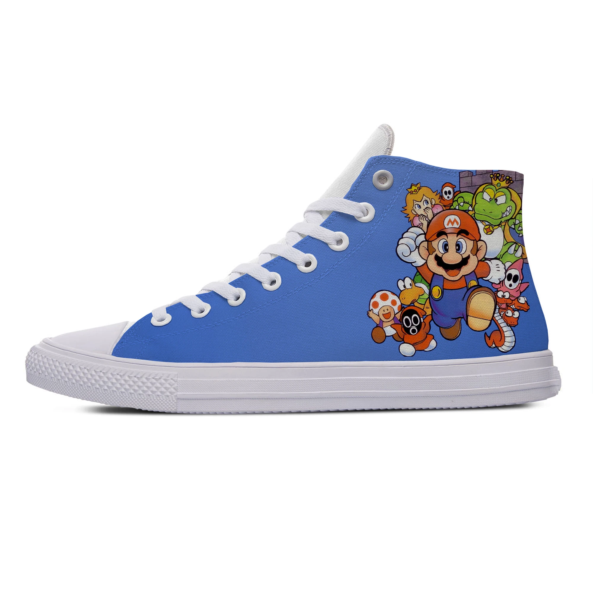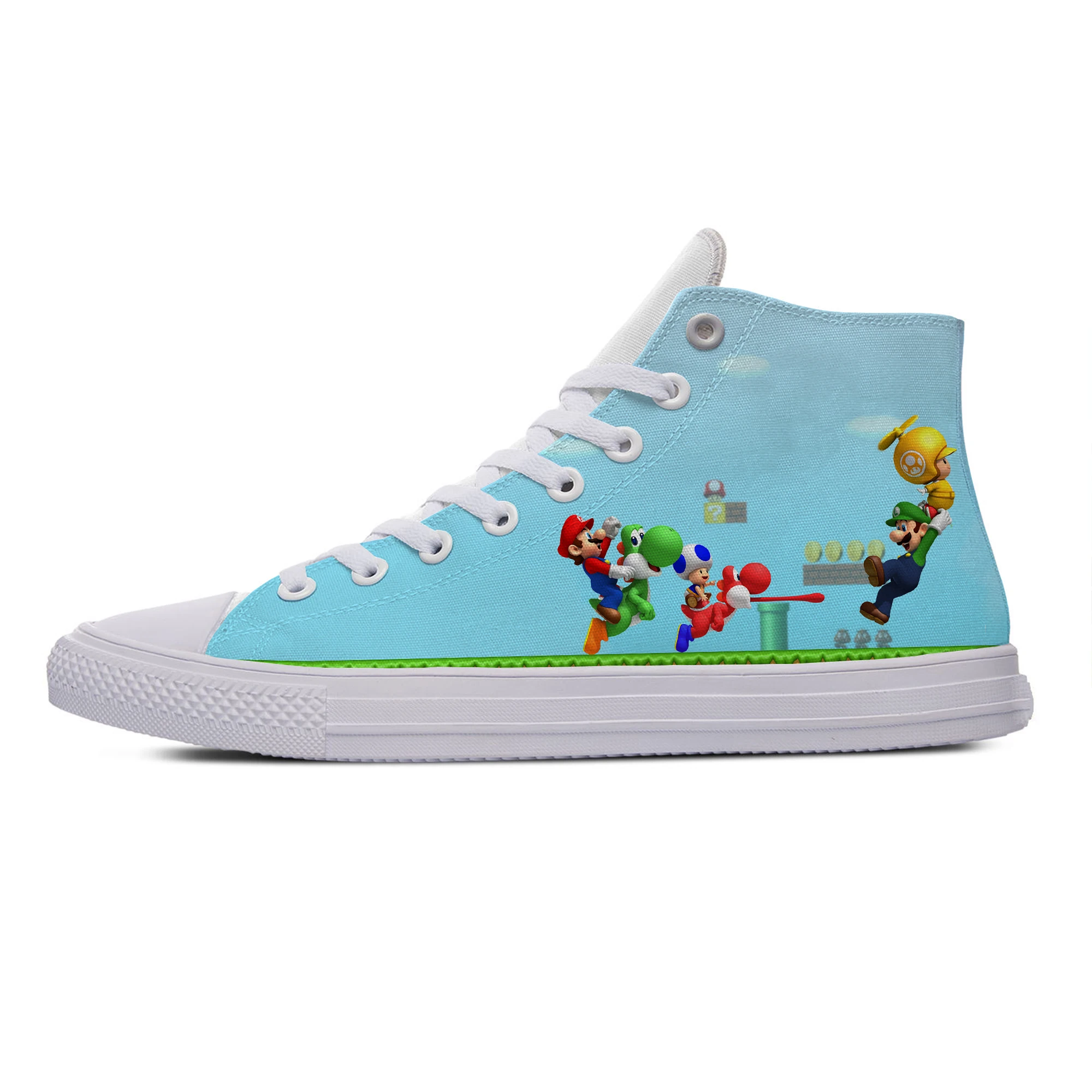 Кроссовки мужскиеженские парусиновые, модная повседневная обувь с супер высокими берцами, дышащие, с 3D принтом в стиле Марио, мультфильмы