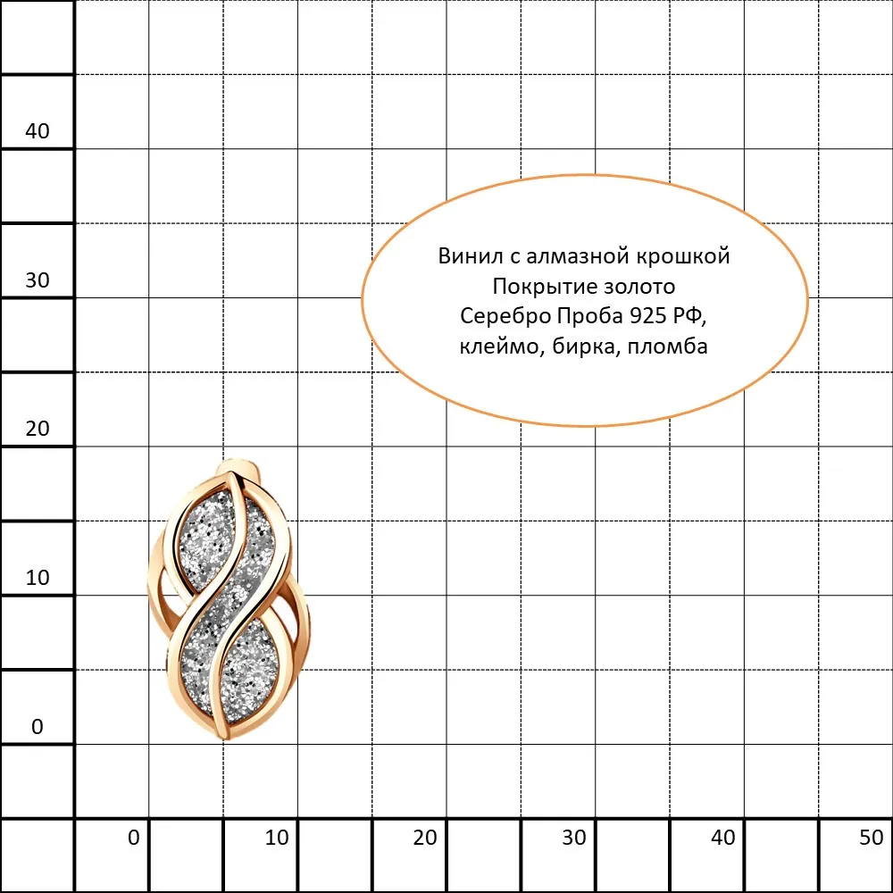 Серьги тренд 2022 NOVOZOLOTO, серебро подлинное 925 пробы, производство Россия, алмазная крошка, покрытие золото, бирка, проба