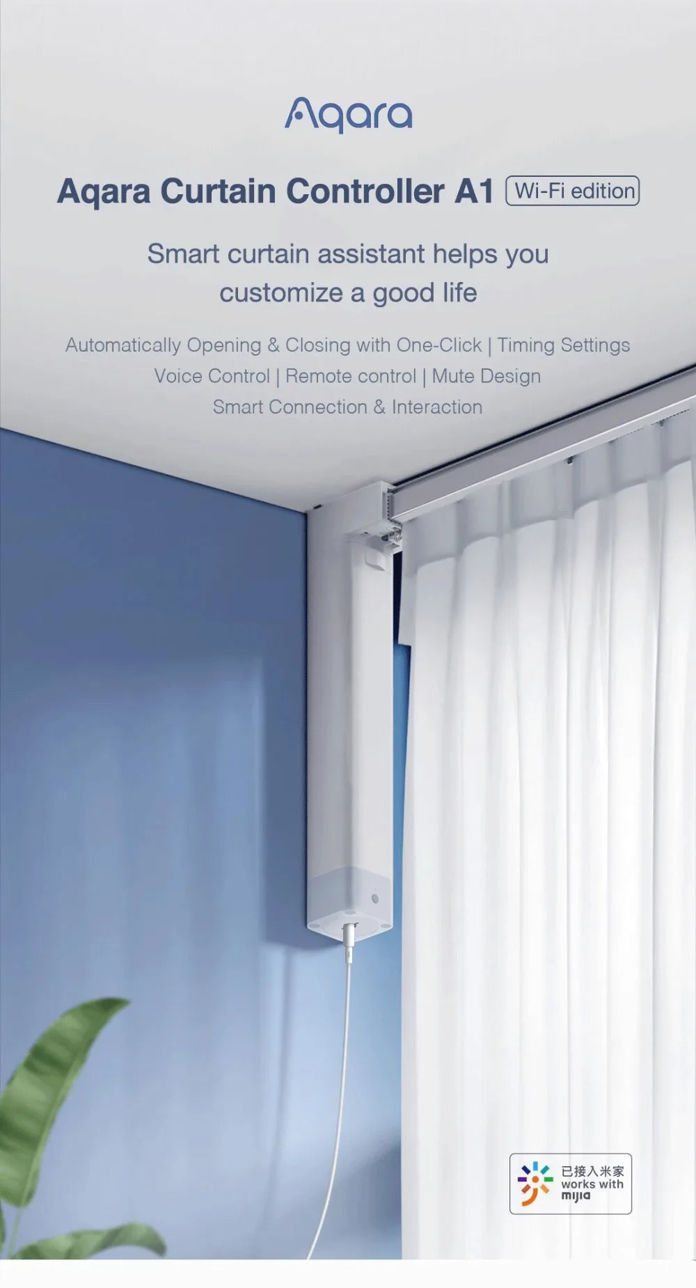 Умный электрический мотор для штор Aqara A1 с Wi-Fi и дистанционным управлением, работает с mijia Mihome