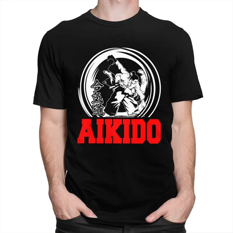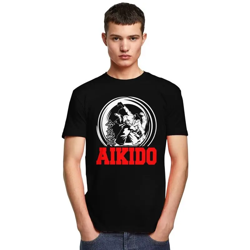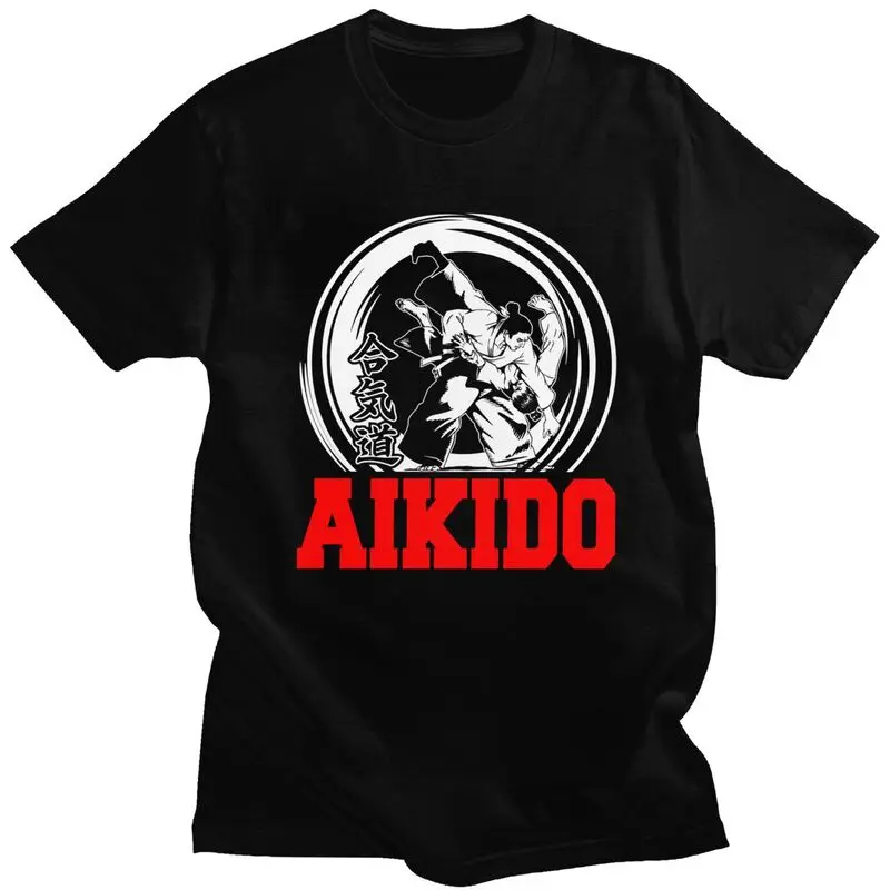Футболка Aikido мужская с японскими боевыми искусствами, хлопковая рубашка с коротким рукавом, с принтом самурайского духа, одежда