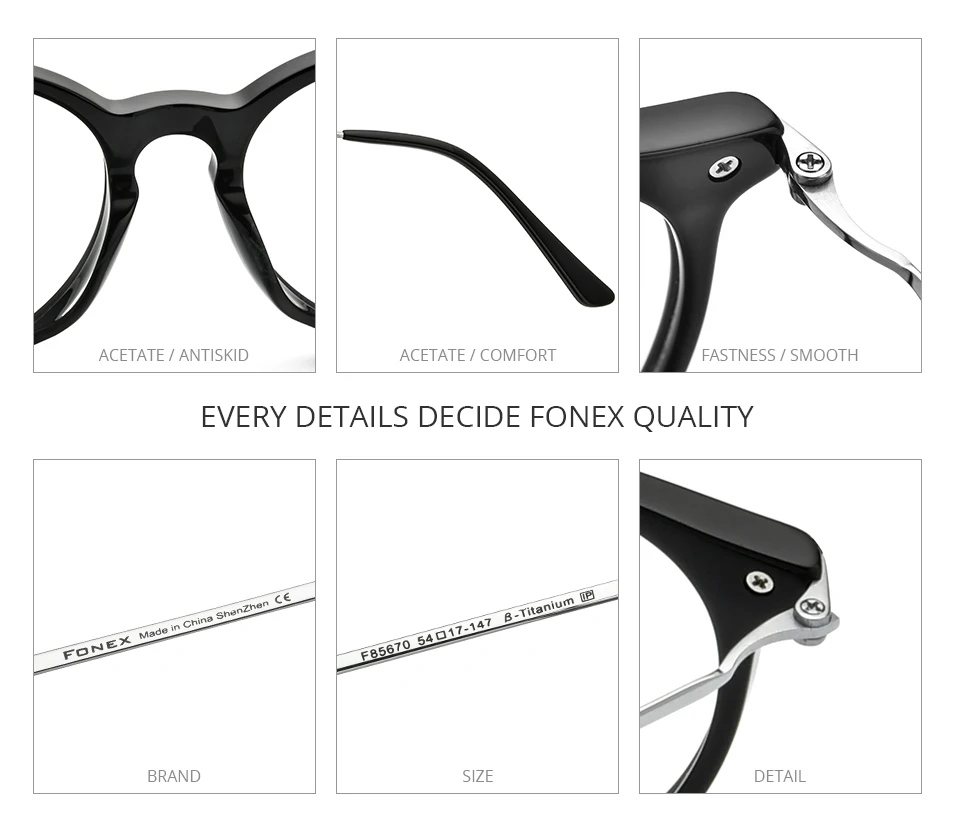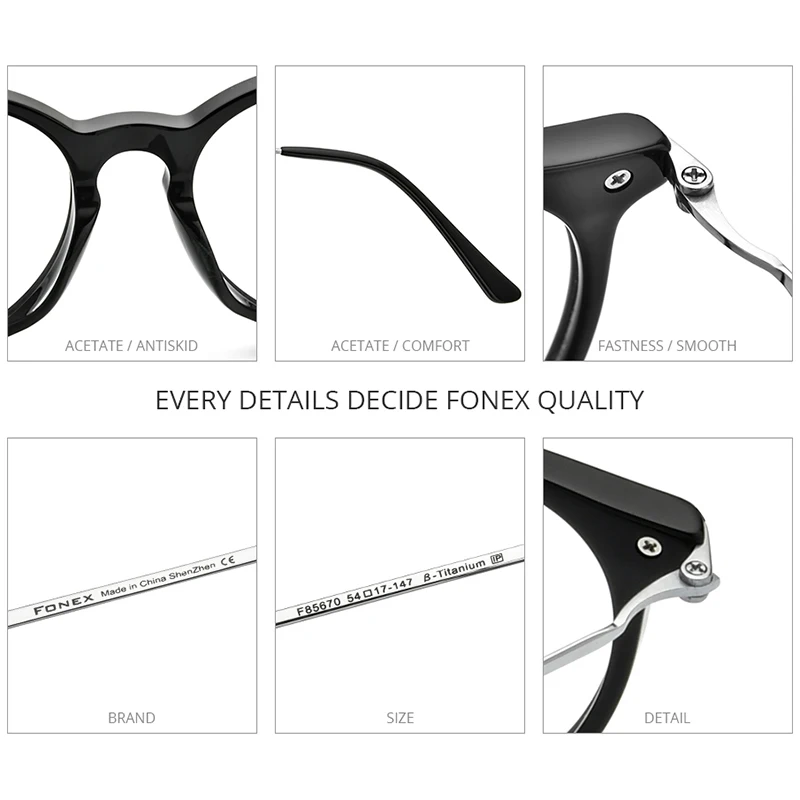 FONEX Мужская и женская круглая оправа, титановая оправа для очков для коррекции близорукости, ацетатные очки, F85670, 2021