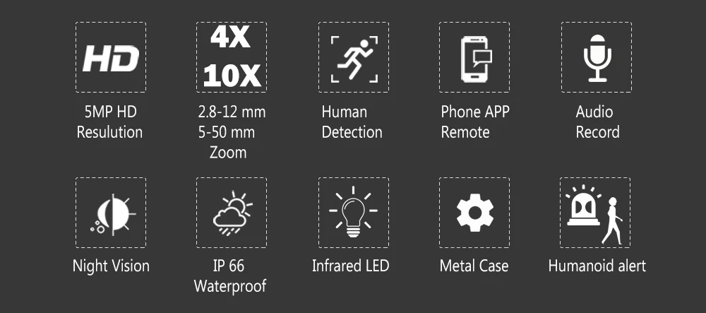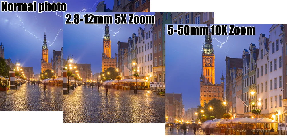 Поддержка 5X Zoom 2,8-12 мм объектив и 10X Zoom 5-50 мм объектив