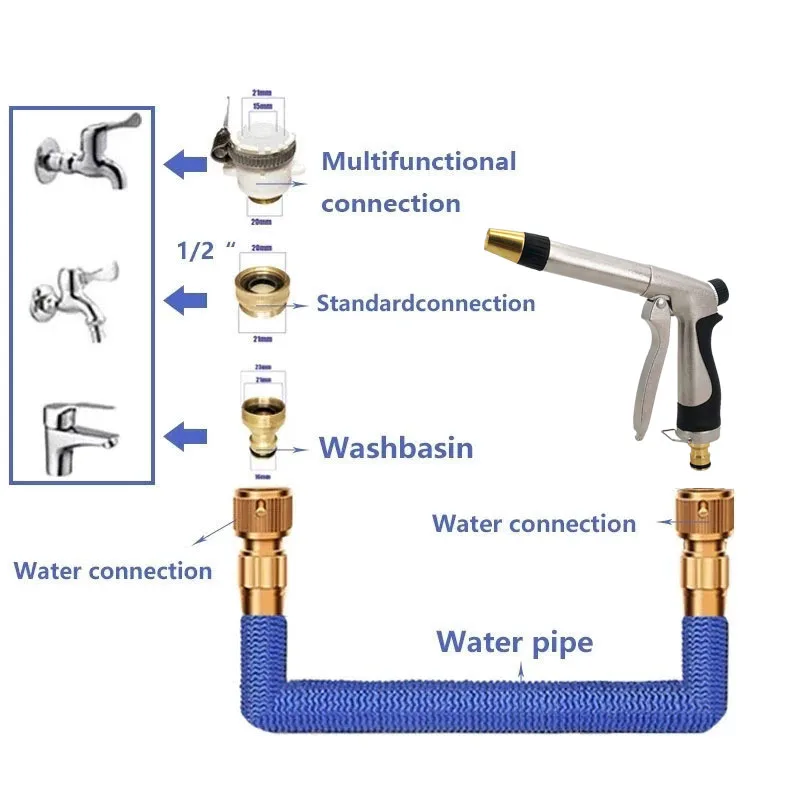Название продукта: телескопический шланг высокого давленияМатериал: алюминиевый сплав + внутренняя трубка TPE + полиэфирная оплеткаРазмер:17ft: 5 м после Закачка воды (оригинальная длина 1,5 м)25ft: 7,5 м после Закачка воды (оригинальная длина 2,5 м)50 футов: 15 м после впрыска воды (оригинальная длина 5 м)75ft: 22m после Закачка воды (оригинальная Длина 7,5 м)100 футов: 30 м после впрыска воды (оригинальная длина 10 м)125ft: 37,5 м после Закачка воды (оригинальная длина 12,5 М)Примечания:1 * / 3 раза расширение и сжатие может только полностью расширяться под высоким давлением воды и может только расширяться 1-2 раза под низким давлением воды.2 */посылка включает в себя: 1 / * шланг + водяной пистолет + универсальное соединение3 */процесс впрыска воды может быть расширен до соответствующей длины.Как только вода проходит через водопроводную трубу, длина водопровода будет увеличена, и вода не пройдет.Для удобства использования, веса и без места светильник отнимет свою первоначальную длину.Шланг завернут в высококачественную, красивую и прочную ткань.Применимые случаи: подходит для орошения и очистки: садов, автомоек, развлекательных автомобилей, бассейнов, лодок и т. д.