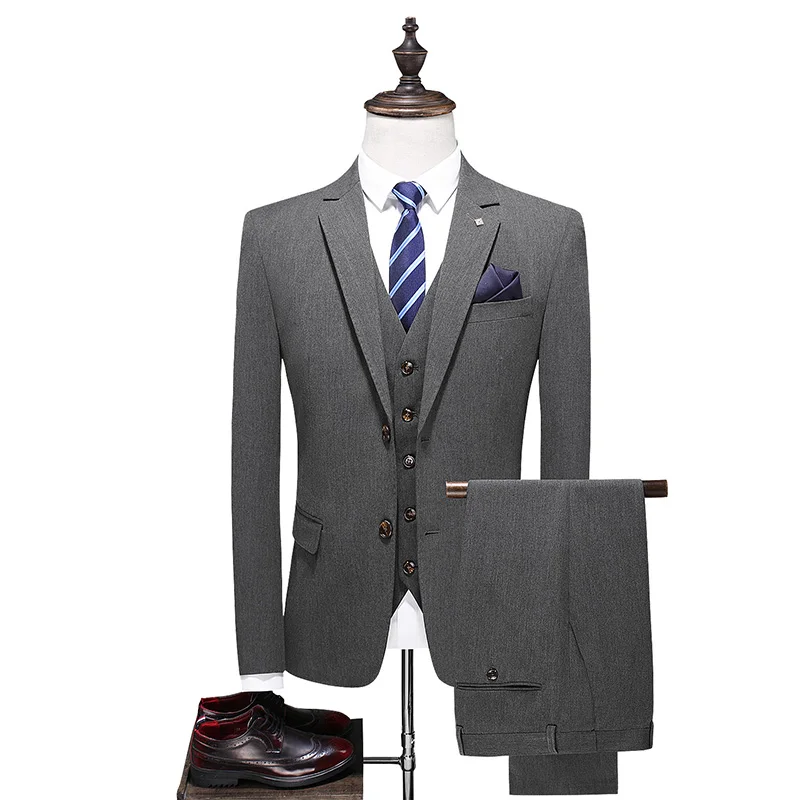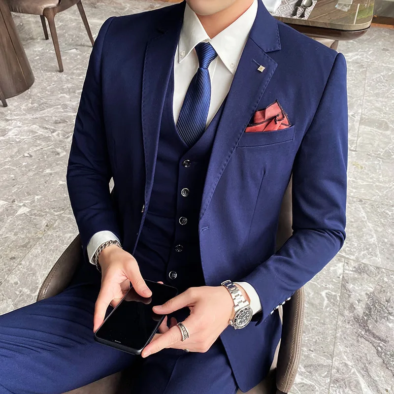 Мужской деловой костюм 2021, смокинг для жениха, свадебный костюм из 3 предметов, приталенный мужской костюм для жениха, Лучший мужской костюм (пиджак + брюки + жилет)