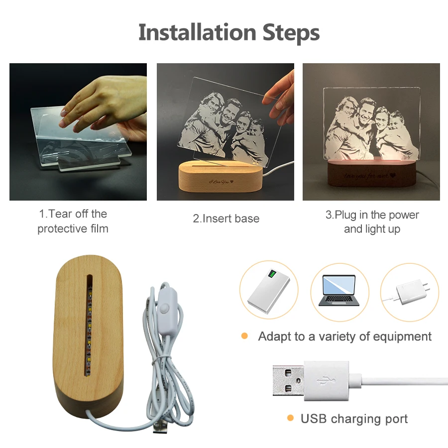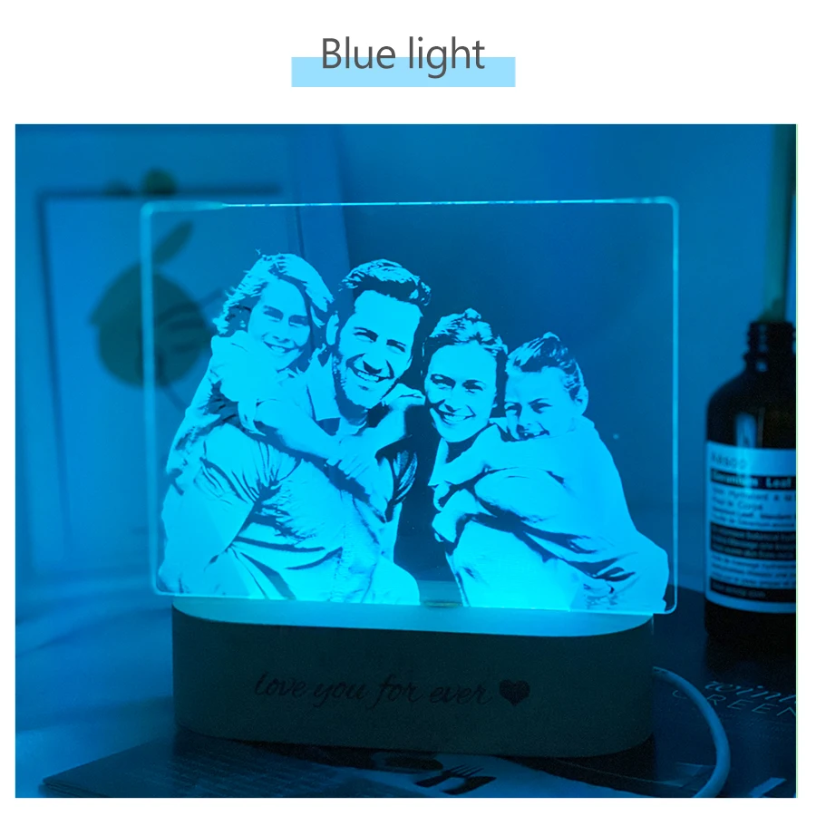 Прямая поставка, фотоискусство, 3D светильник, настольная лампа, деревянная основа, Рождество, День Святого Валентина, подарок, USB питание, пользовательская лампа
