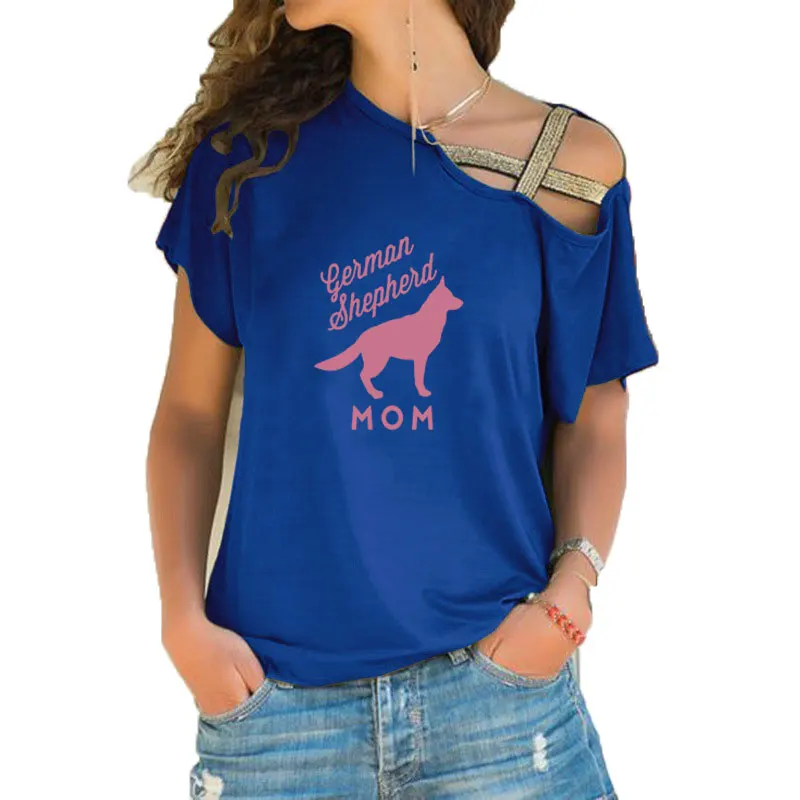Женская хлопковая футболка с коротким рукавом, асимметричная летняя футболка с перекрестной повязкой, с принтом немецкой овчарки и собаки, 2021