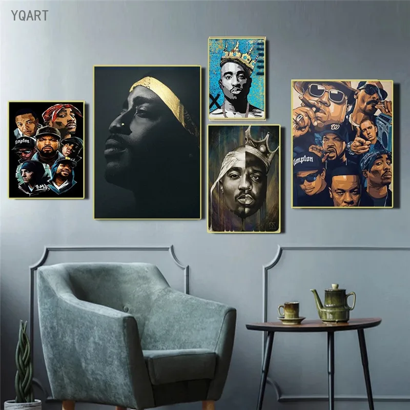 Художественные холщовые постеры и настенные картины West Coast в стиле хип-хоп Тупак с изображением абстрактного портрета картины для оформления искусств