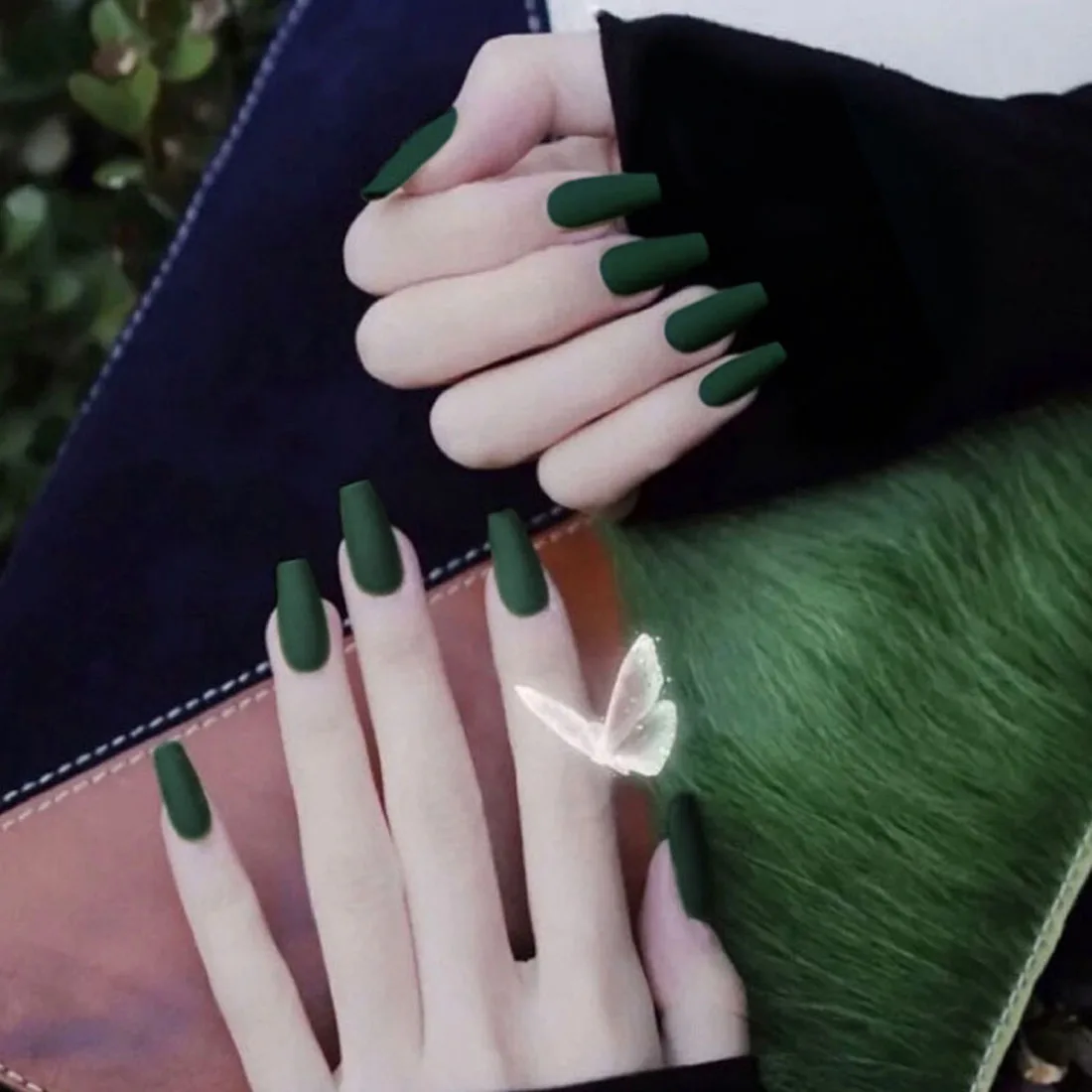 24 шт. Пресс для ногтей, для нанесения с помощью клея Европы и Соединенных Штатов Америки темно-зеленый Однотонная одежда матовый длинные балерина Форма накладные ногти с использованием такого клея, для девочек, детская футболка