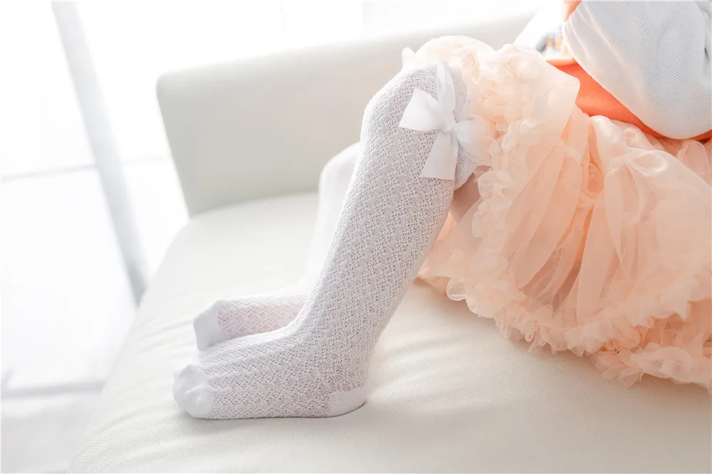 Носки для новорожденных, носки для девочек, на лето и весну сетчатые детские носки до колена с украшением в виде банта; Высокие носки без пятки с рисунком лисицы; Платье принцессы для новорожденных; Детские носки для малышей Одежда для детей