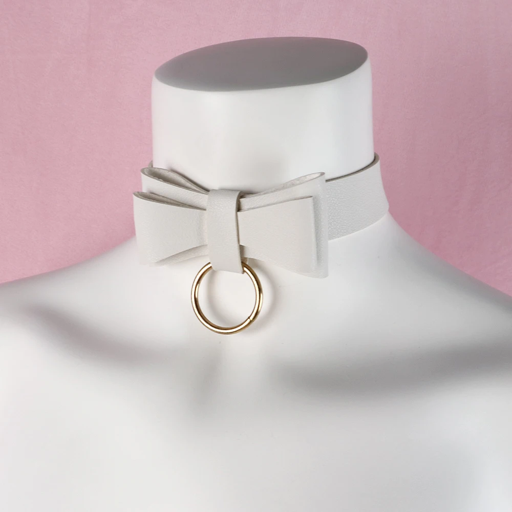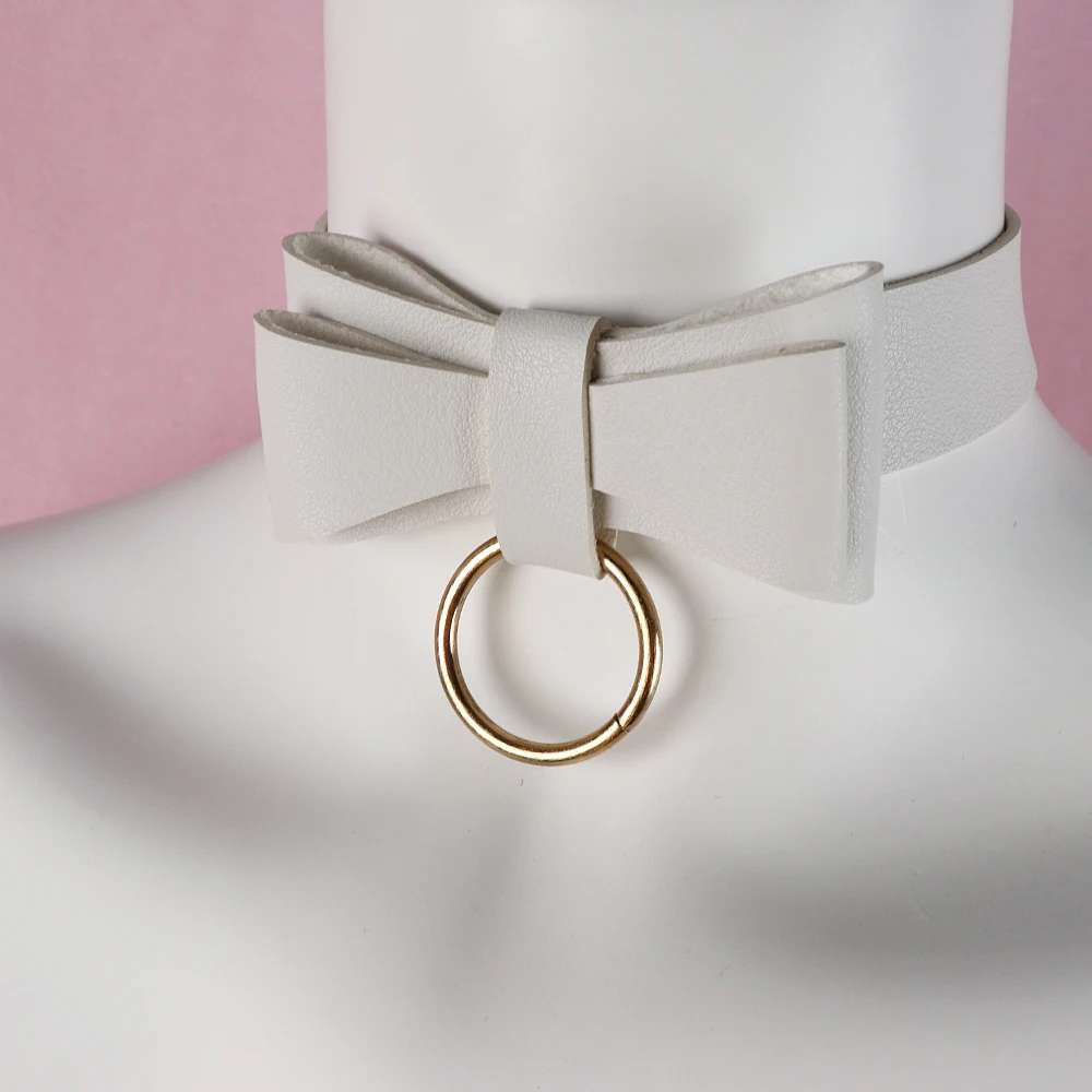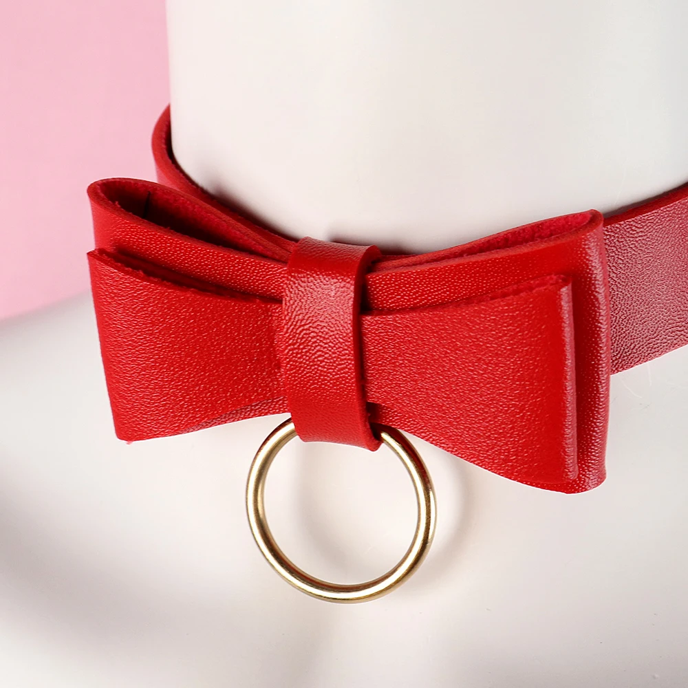 Сексуальный красочный кожаный ожерельлье с бантиком Регулируемый воротник ремешок на шею Модный панк ожерелье одежда аксессуары для женщин и девочек