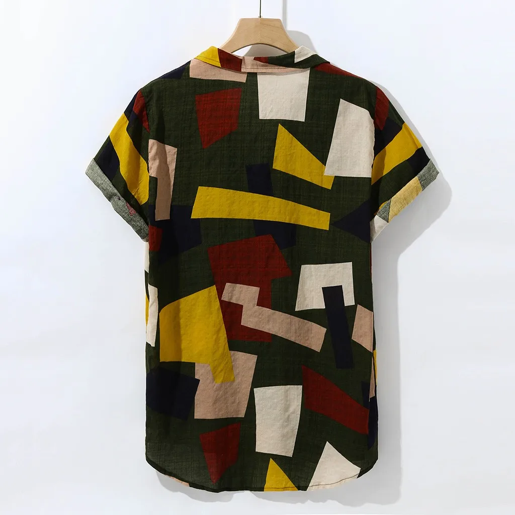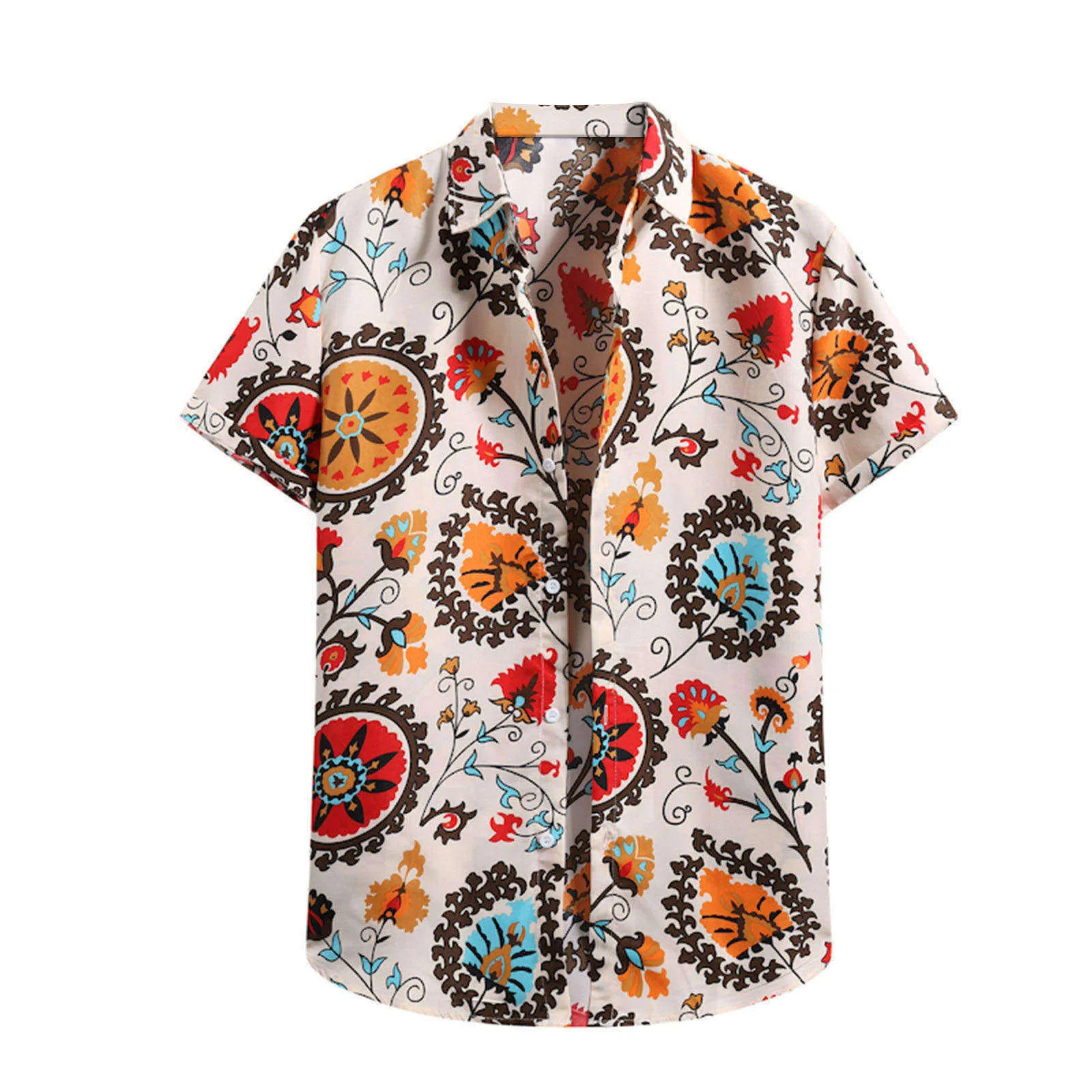 Летняя мужская рубашка в стиле пэчворк, Гавайские рубашки с принтом, свободные рубашки для мужчин, топы с коротким рукавом, Повседневная рубашка на пуговицах, мужская рубашка