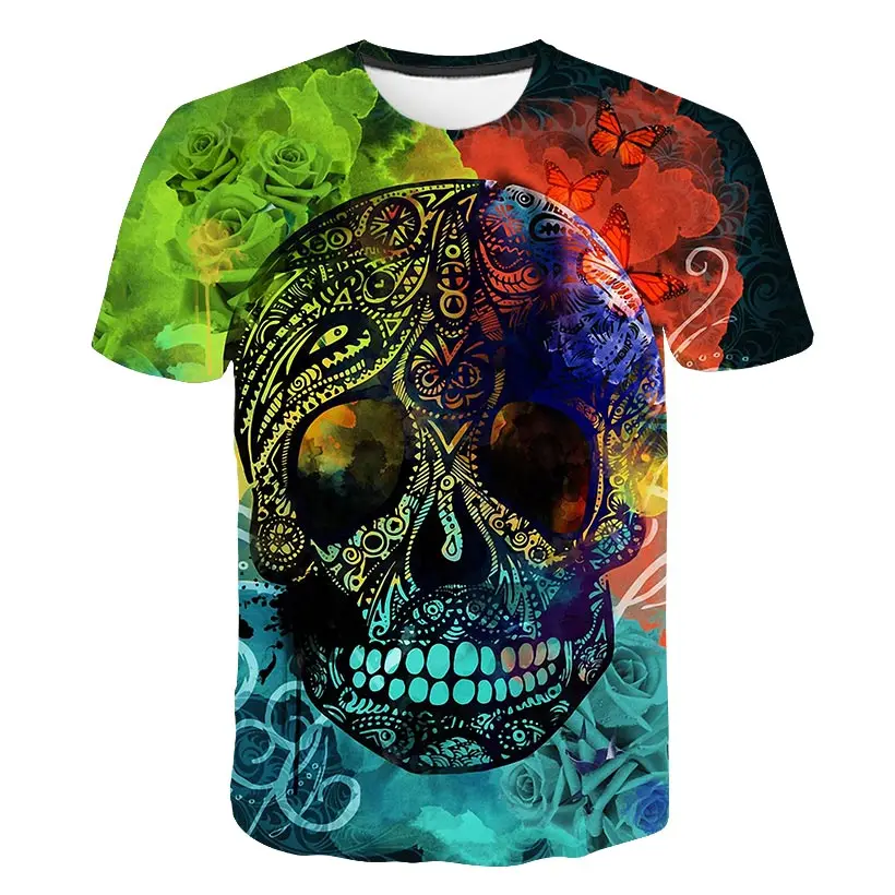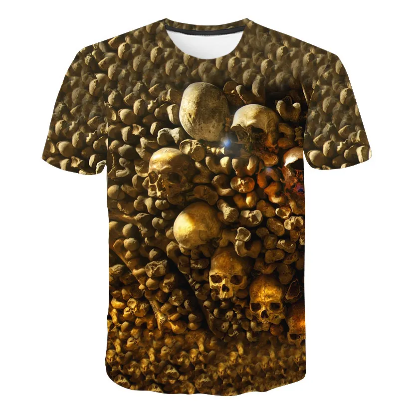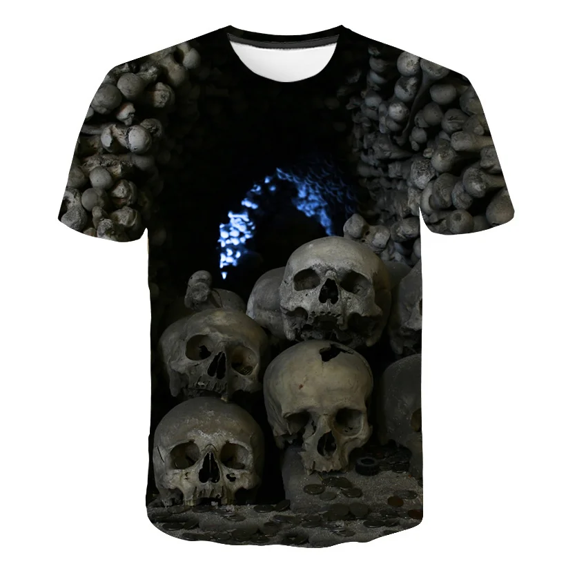 Футболка с 3D-принтом черепа для мальчиков и девочек, Повседневная футболка с коротким рукавом в стиле Харадзюку, 2021