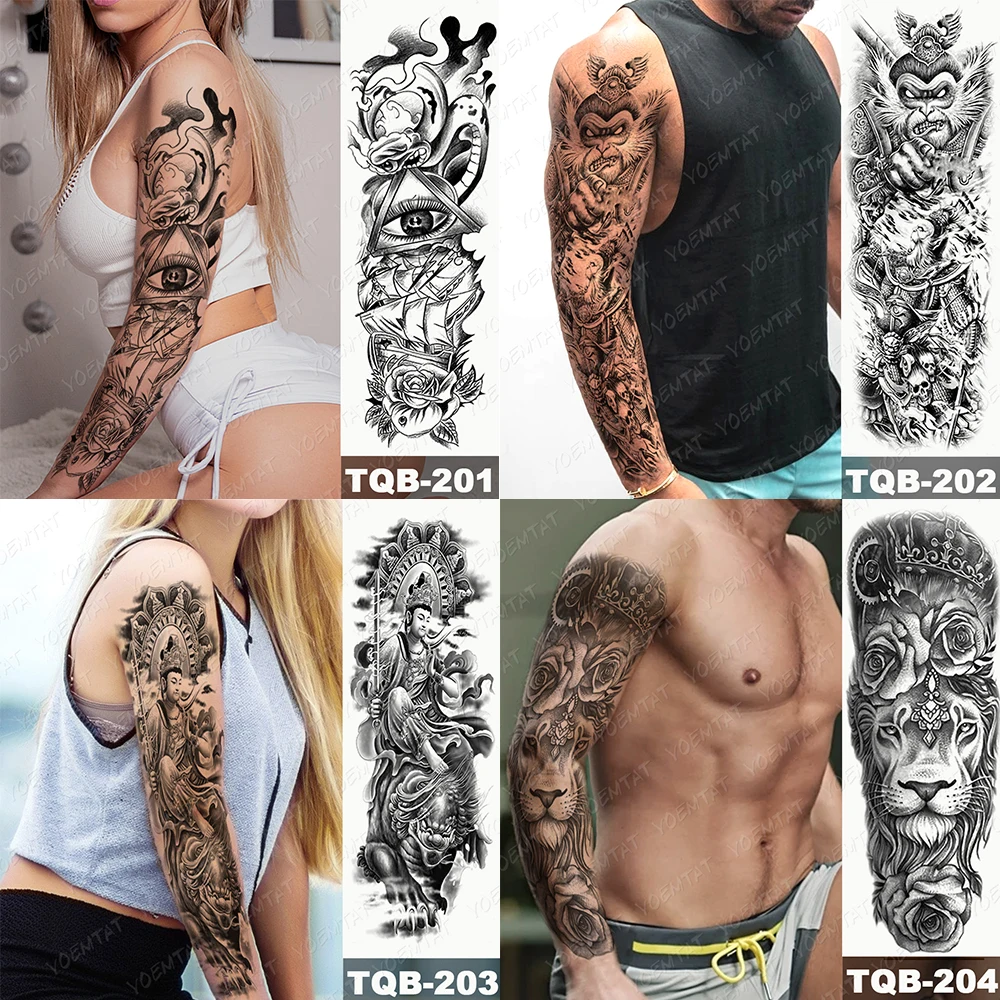 Водонепроницаемый временные полные руки наклейки для временных татуировок часы Лев волк Zeus розовое флэш-тату мужской боди-арт большой Поддельные рукава татуировки золотого и серебряного Для женщин