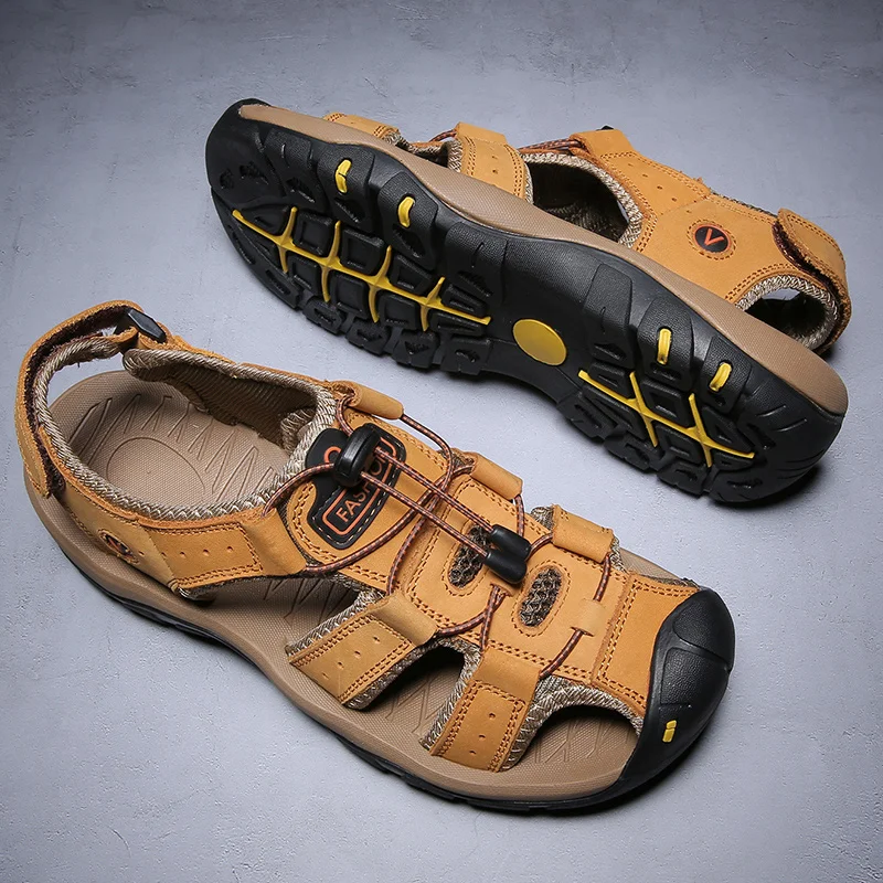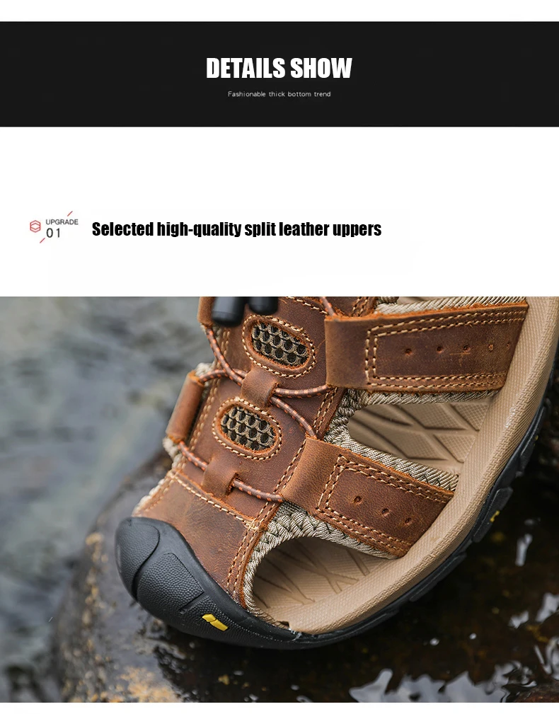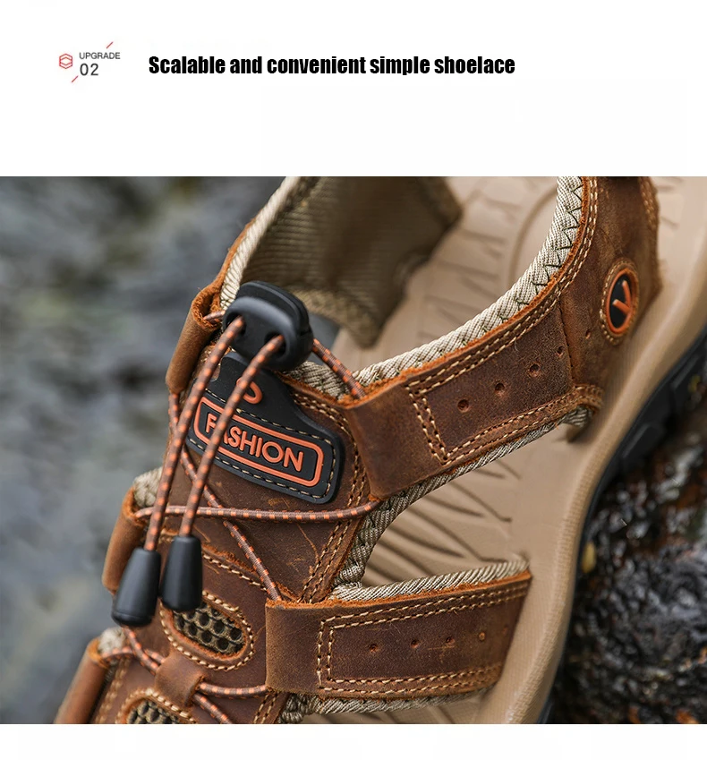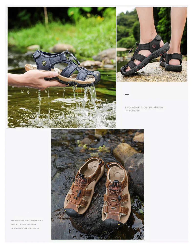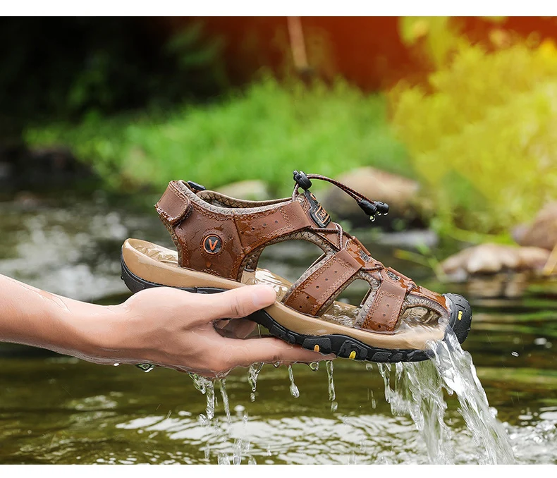 Уличные мужские сандалии, дышащая Летняя мужская обувь, кожаные сандалии, пляжные сандалии, водонепроницаемая подошва, повседневная обувь