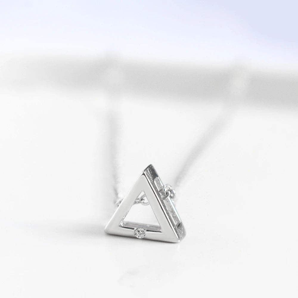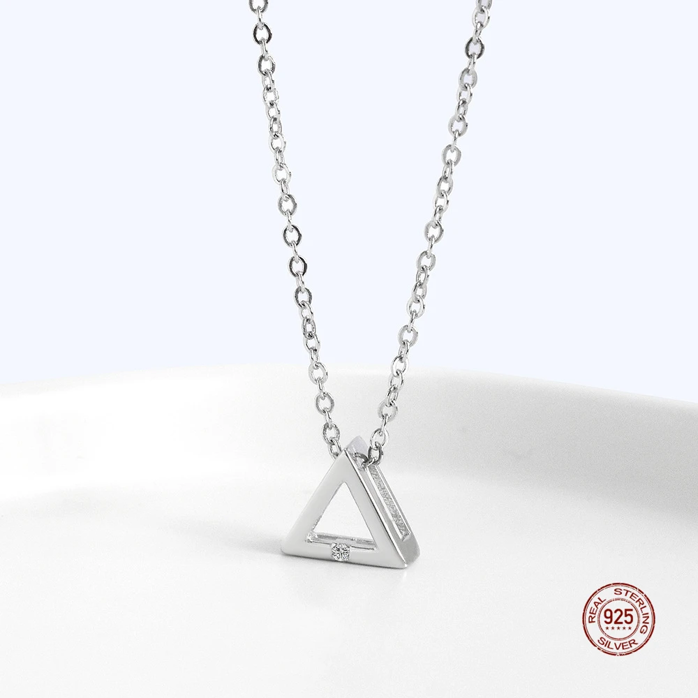 LKO Настоящее серебро 925 пробы кристалл треугольный кулон Цепочки и ожерелья для женщин Шарм Свадебная вечеринка ювелирные аксессуары подарок девушке
