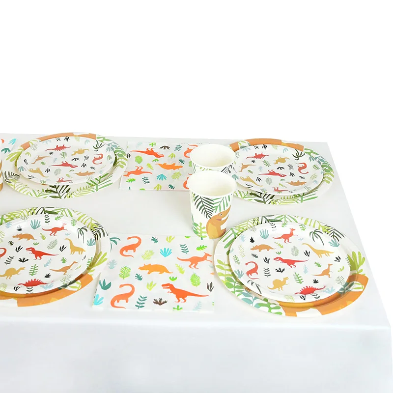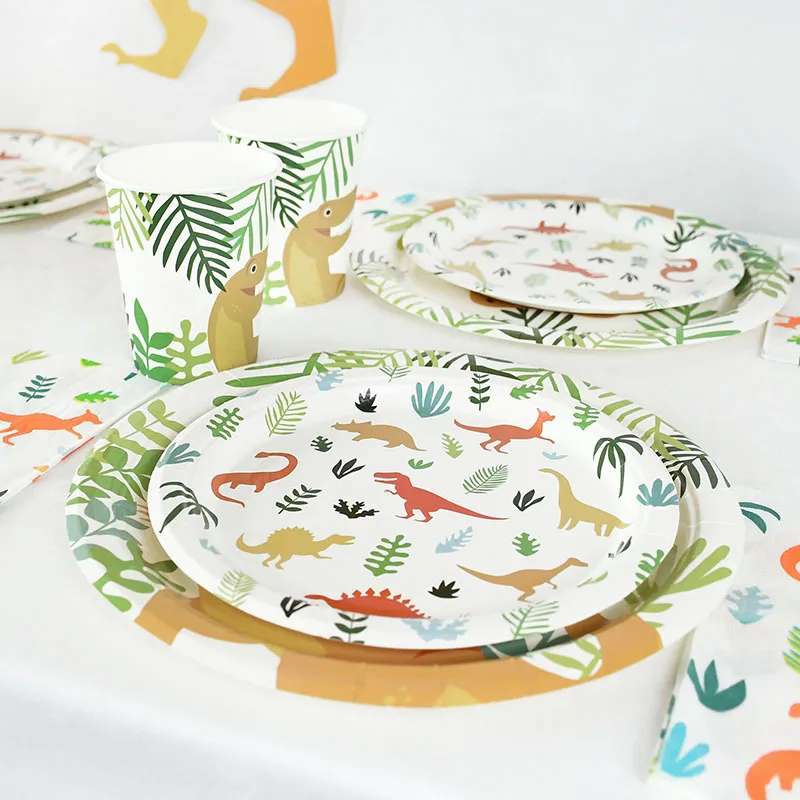 Джунгли динозавр вечерние поставки Бумага одноразовые трубочки посуда набор дети мальчик Baby Shower День рождения вечерние украшения
