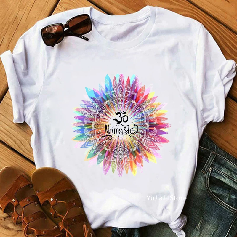 Женские винтажные футболки с принтом мандалы, летний модный женский...