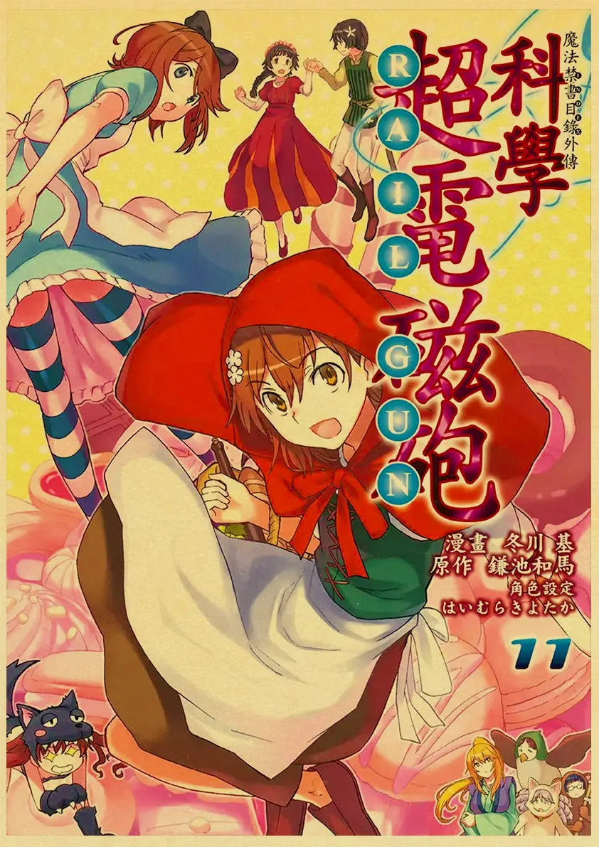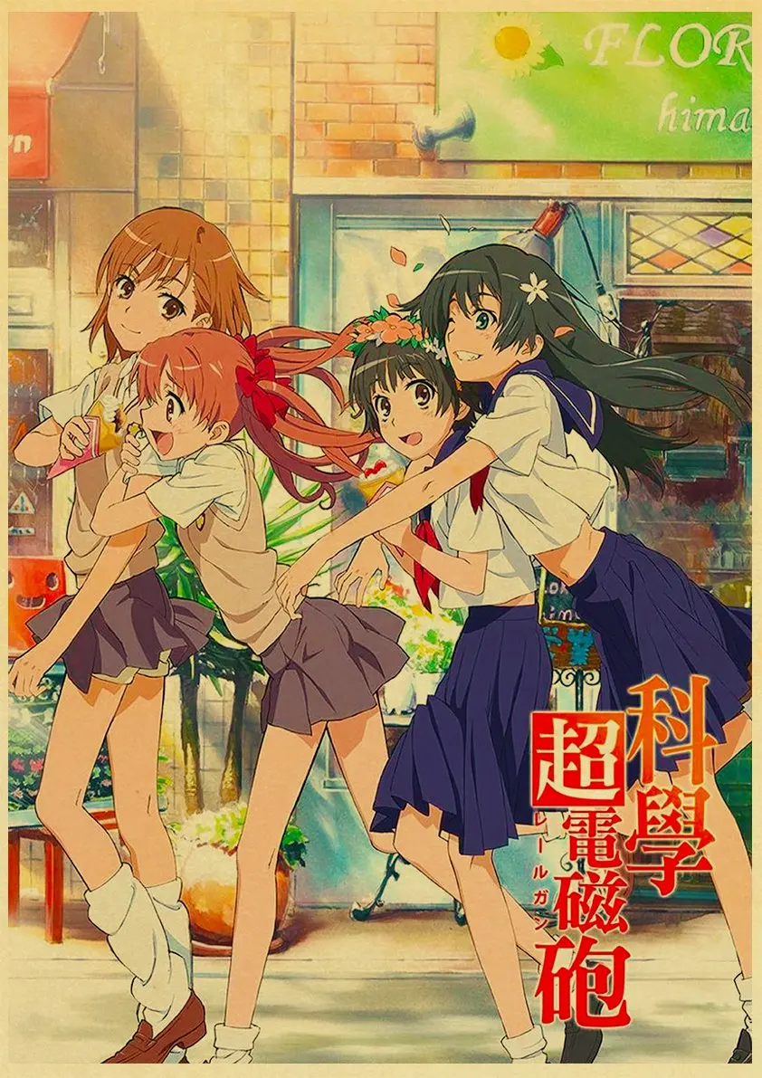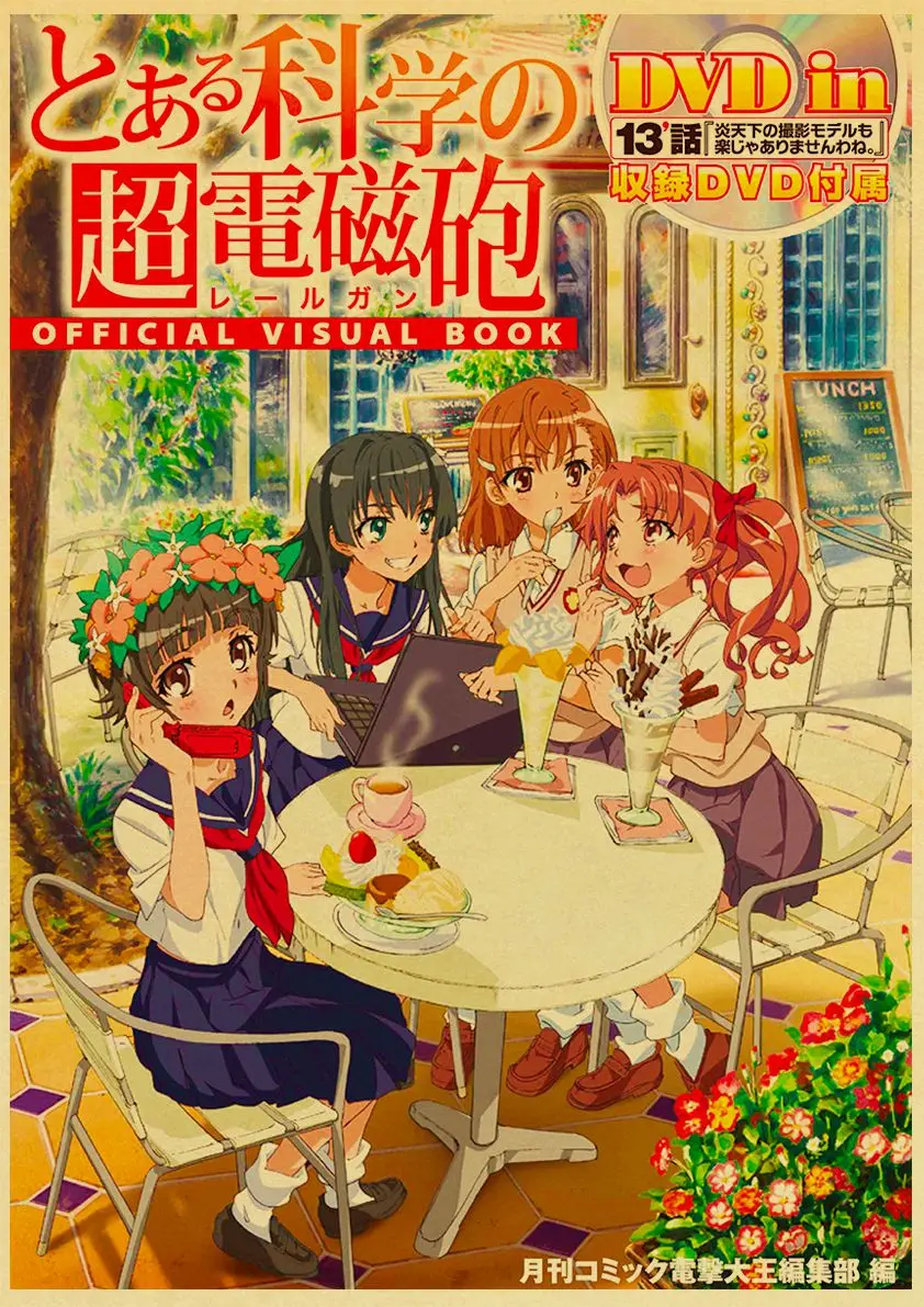 Винтажная аниме-картина Toaru Kagaku без железнодорожного пистолета, постер из крафт-бумаги, Мисака Микото, кафе, бар, домашнее искусство, настенная живопись, картина, декор