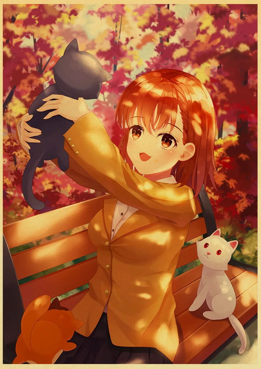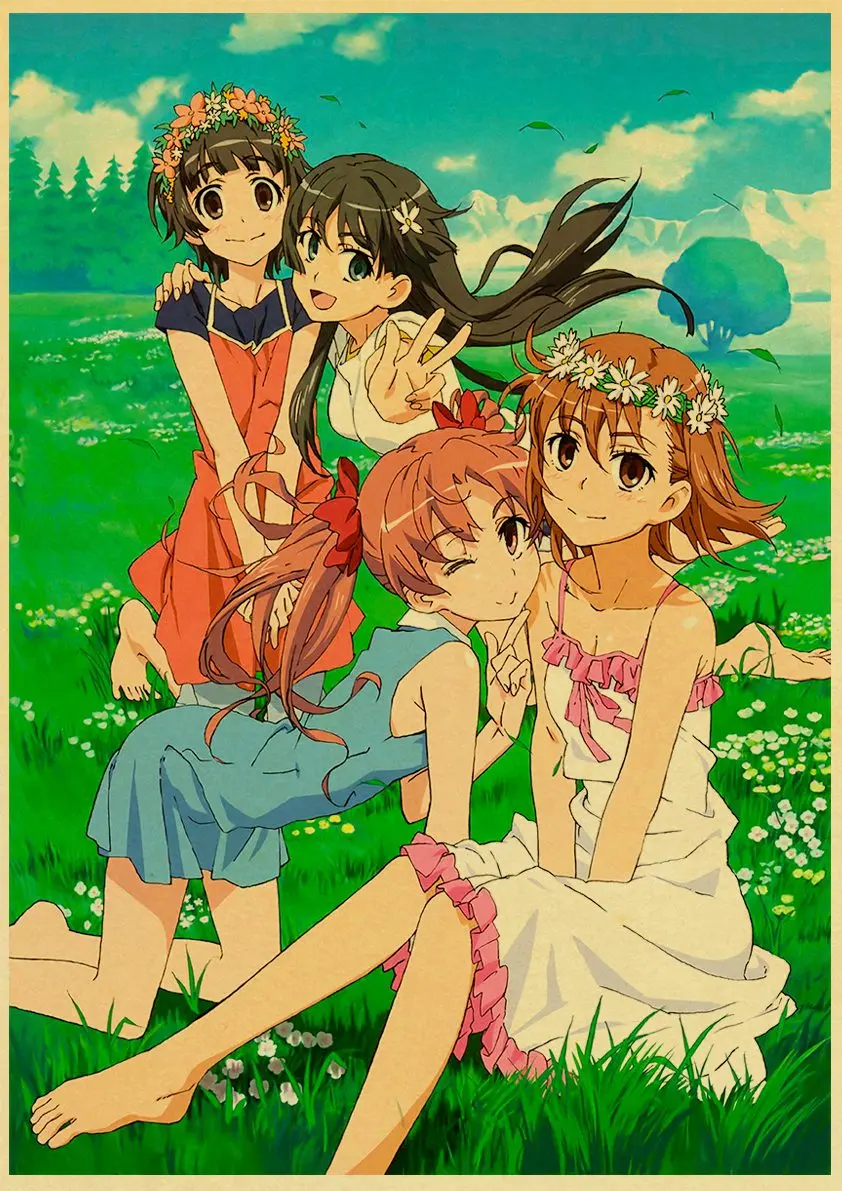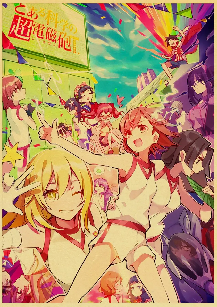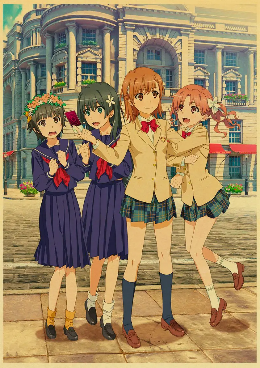 Винтажная аниме-картина Toaru Kagaku без железнодорожного пистолета, постер из крафт-бумаги, Мисака Микото, кафе, бар, домашнее искусство, настенная живопись, картина, декор