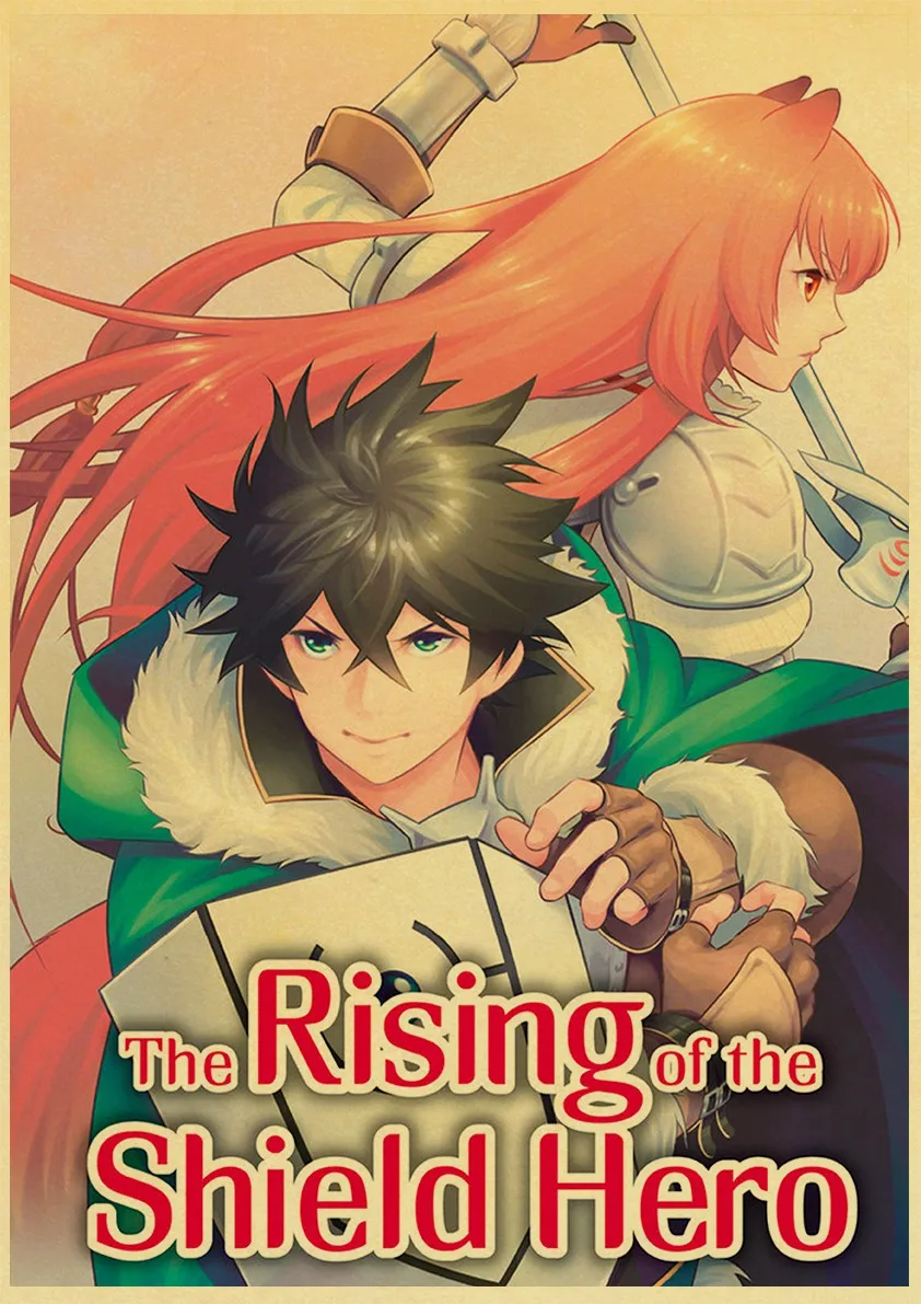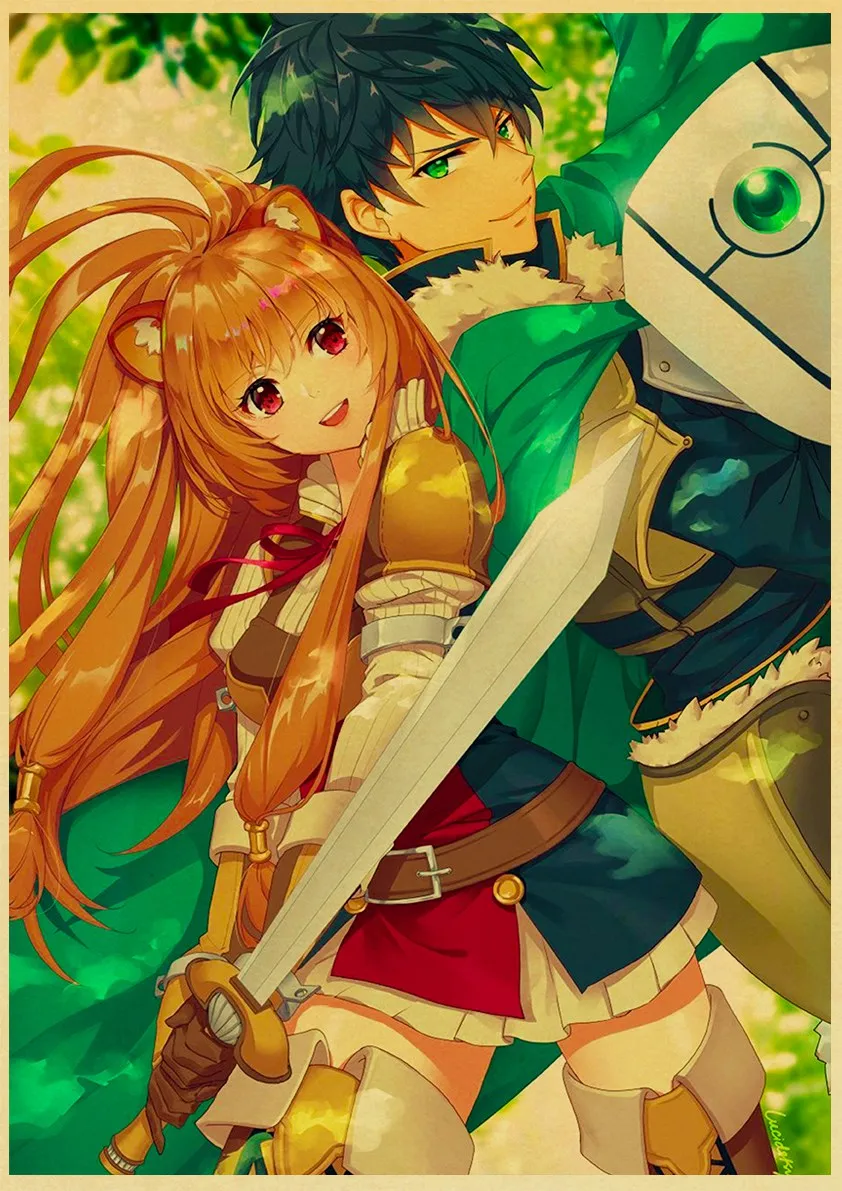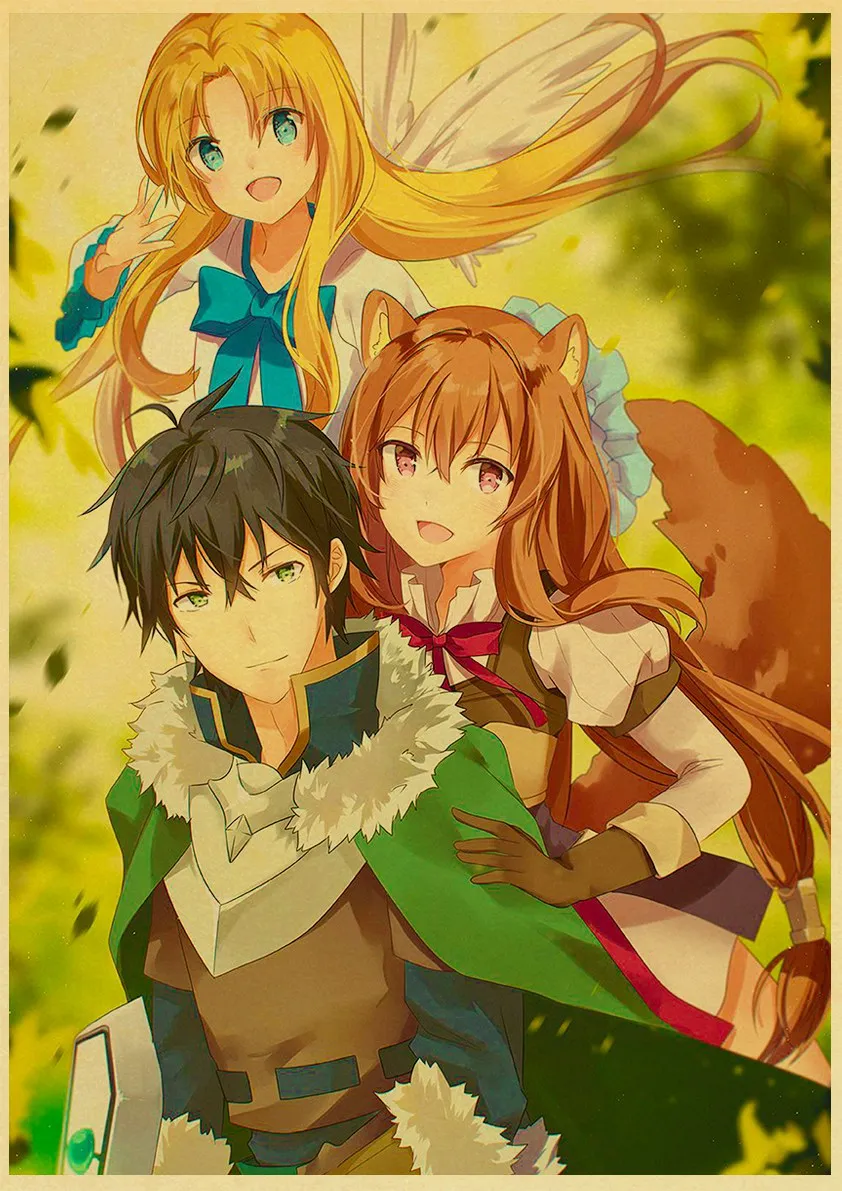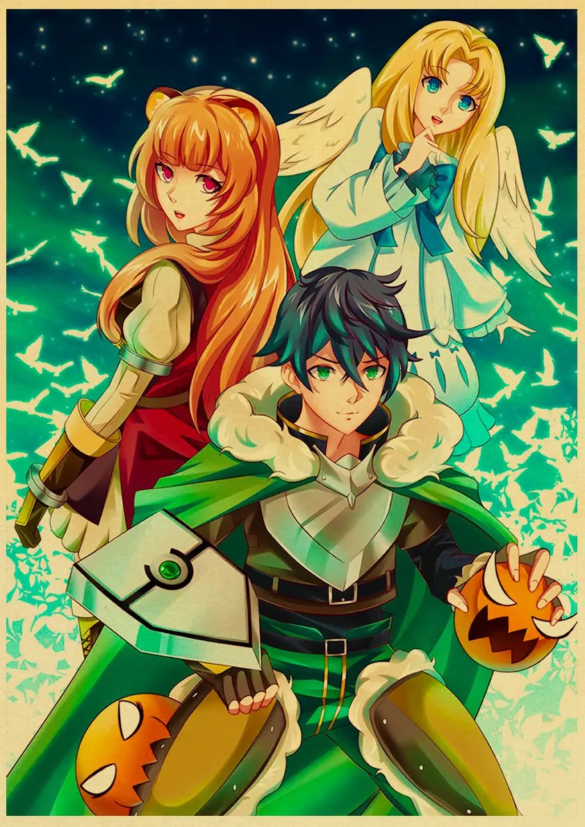 Постер из крафт-бумаги с изображением героев из японского аниме Восхождение щита