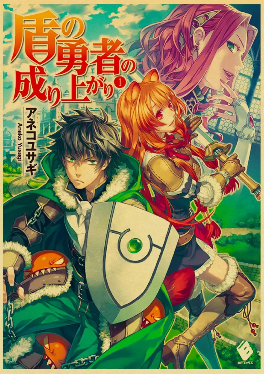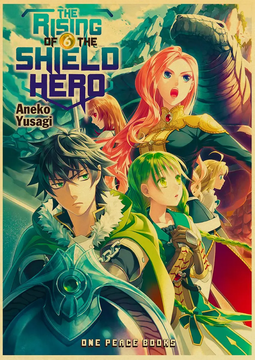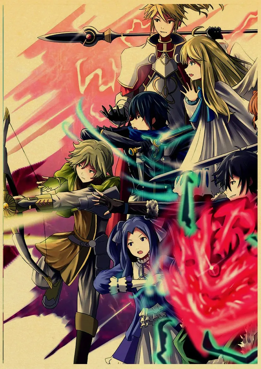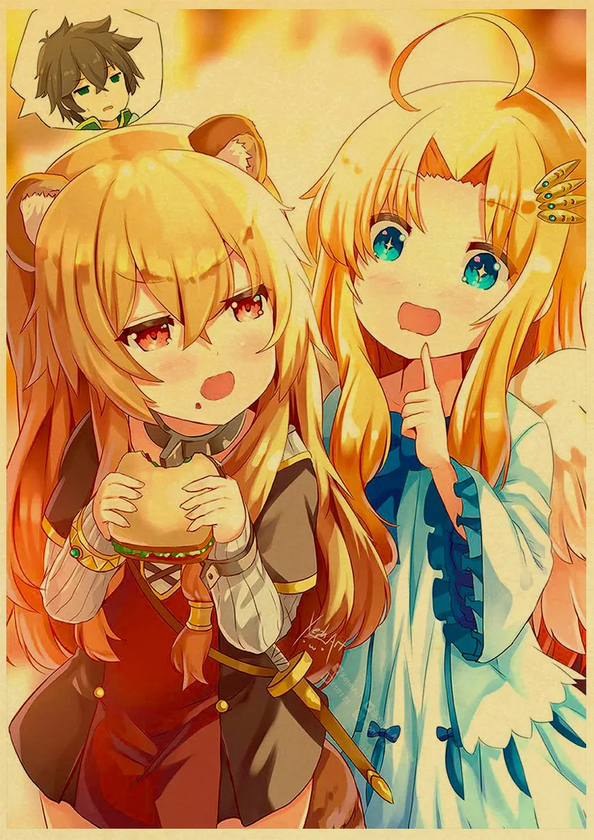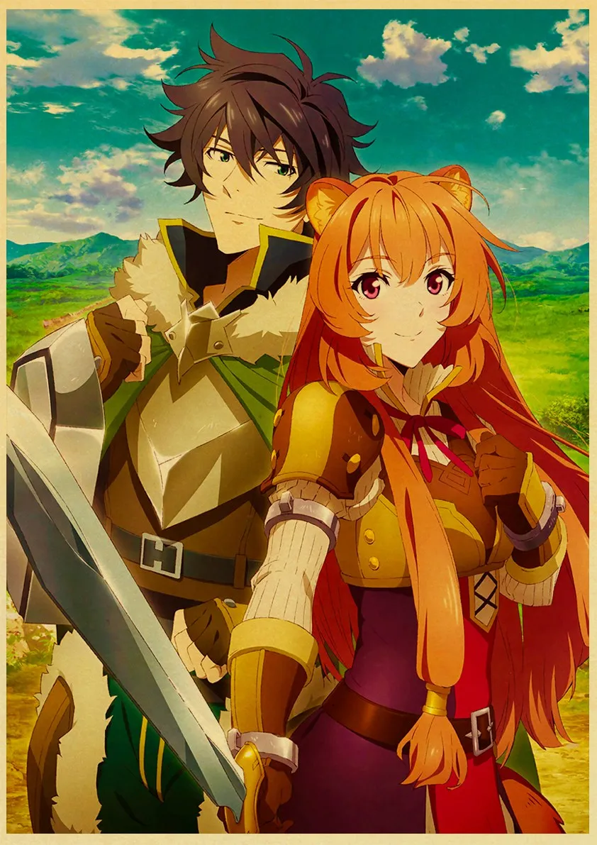Постер из крафт-бумаги с изображением героев из японского аниме Восхождение щита