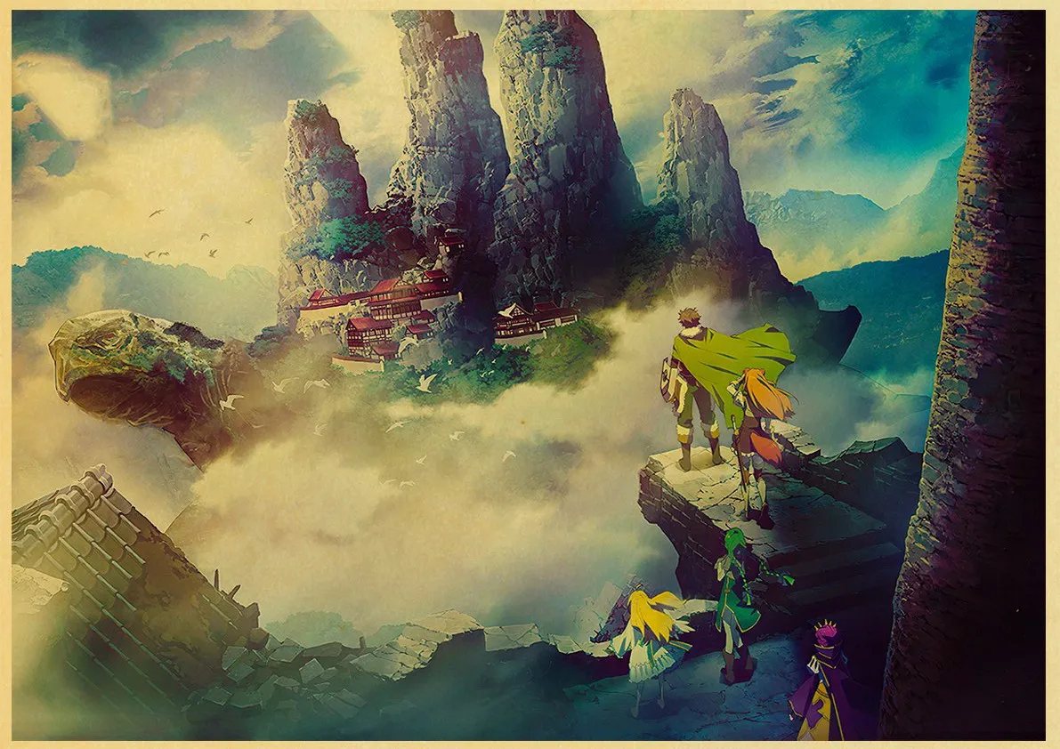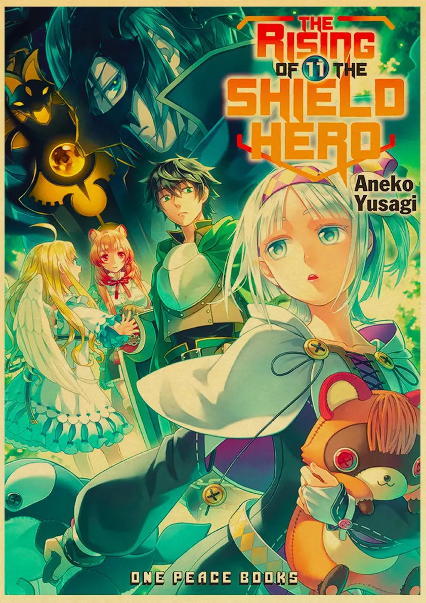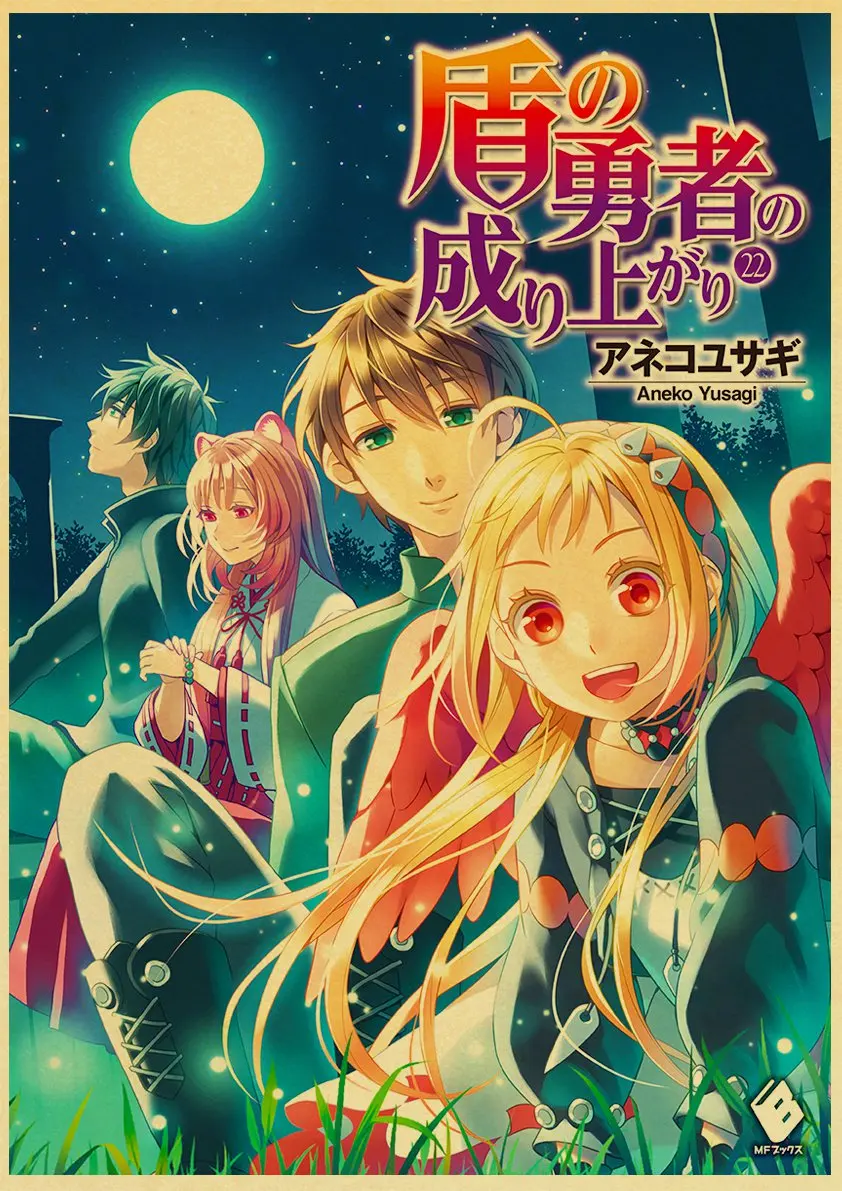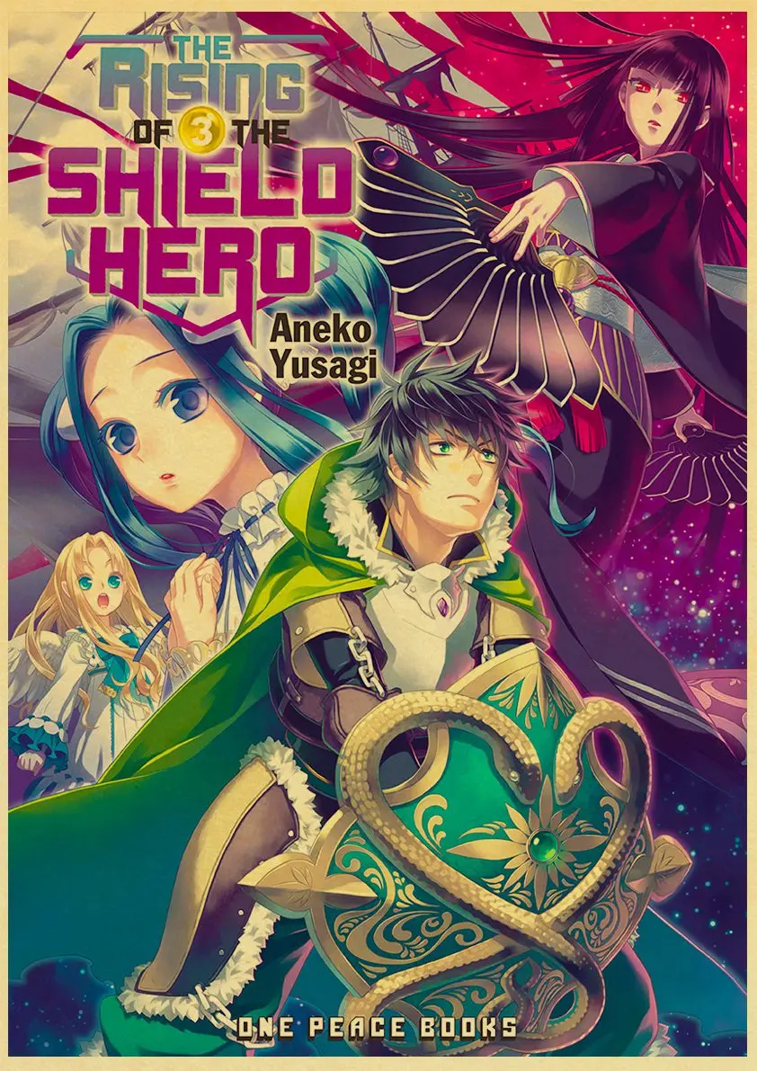 Постер из крафт-бумаги с изображением героев из японского аниме Восхождение щита