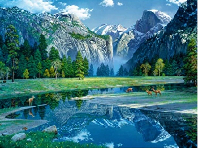 Алмазная вышивка 5D с изображением леса, лося, оленя, домашний деко...