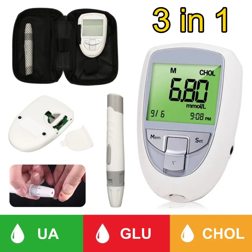 BeneCheck 3в1 измеритель уровня глюкозы в крови, мочевой кислоты и холестерина, бытовой комплект глюкометра, тест на диабет, устройство для контроля и тест-полоски