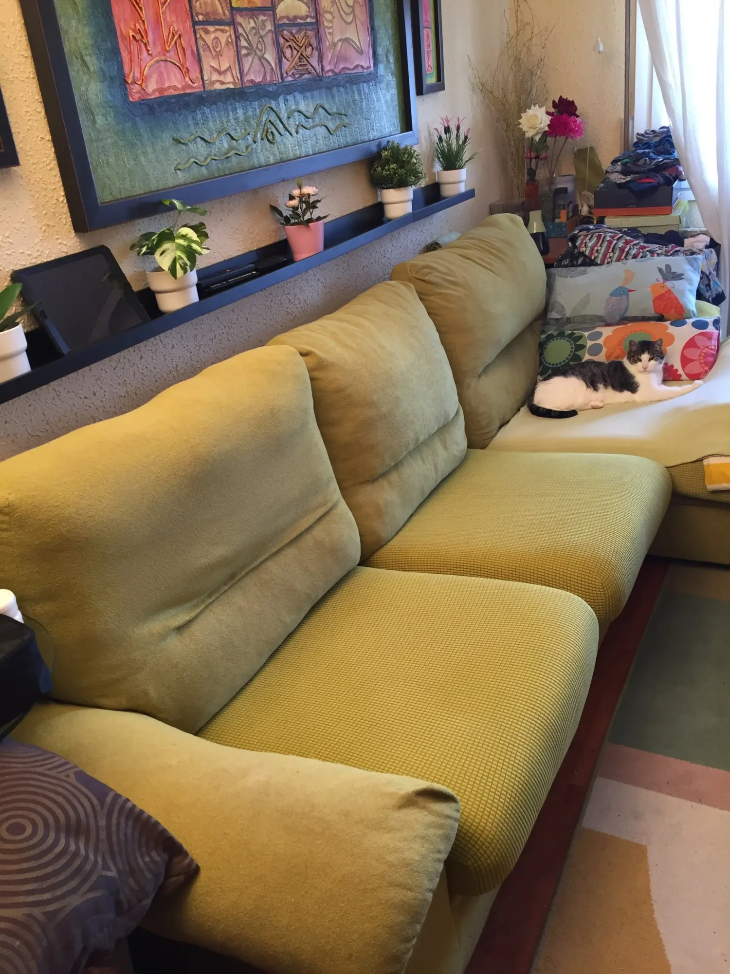 Они отлично подходят для покрытия потрепанной мебели для патио. Он находится под крытой крышей, поэтому мы увидим, как они держатся на открытом воздухе, даже если они не предназначены для использования снаружи.