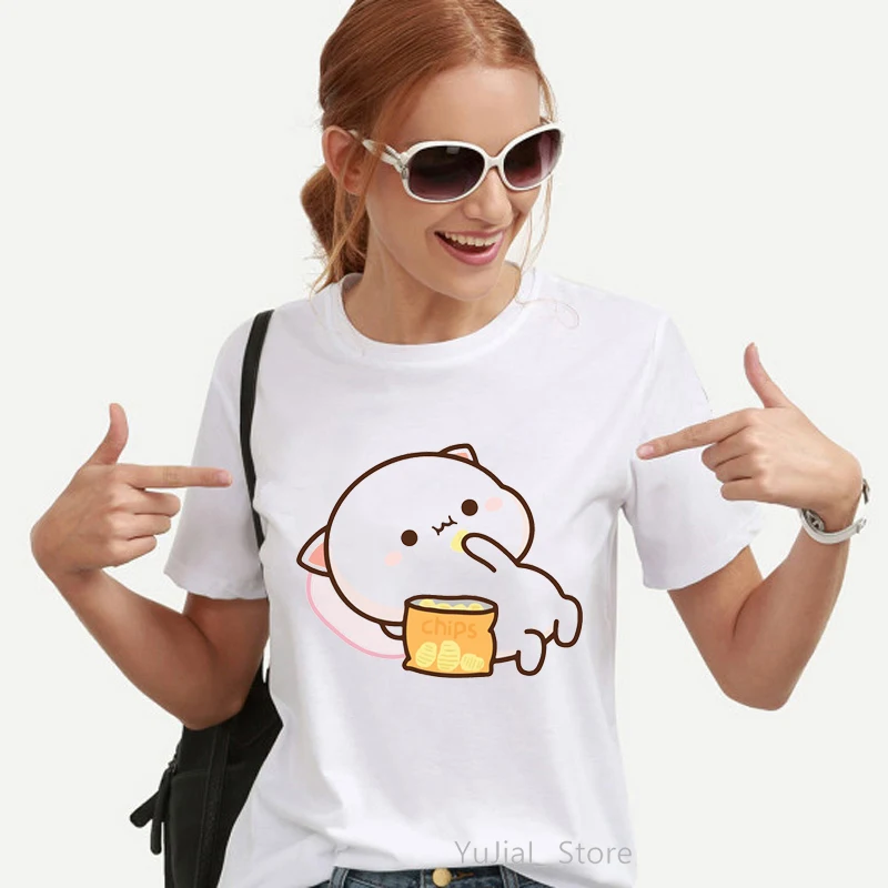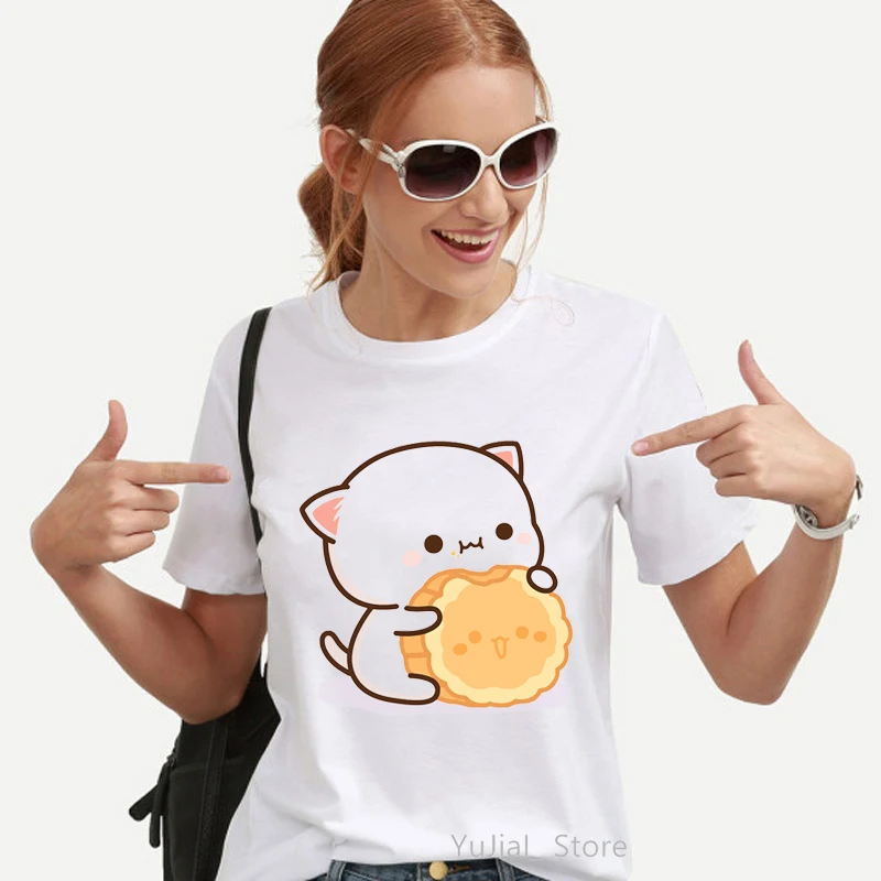 Футболка с принтом персика и Гомы, кошки, любовь, мороженое, женская одежда, забавная футболка, Женская милая одежда в стиле Харадзюку