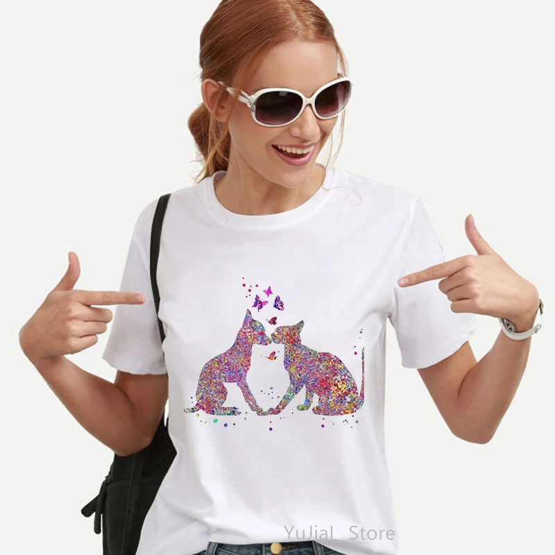 Женские летние топы, футболка с акварельным принтом в стиле Харадзю...