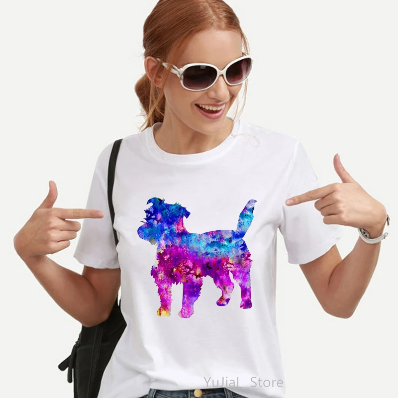 Футболка женская летняя Акварельная с принтом собаки шнауцераокраше...