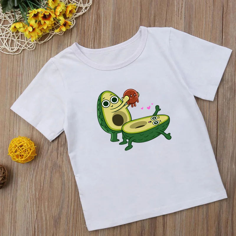 Футболка детская с коротким рукавом, с изображением авокадо, кошки