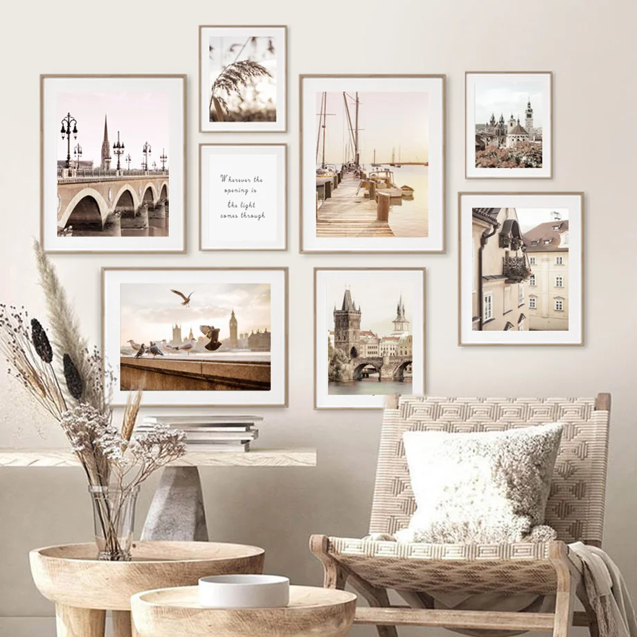 Скандинавские постеры, уличные окна, весеннее побережье, простой ст...