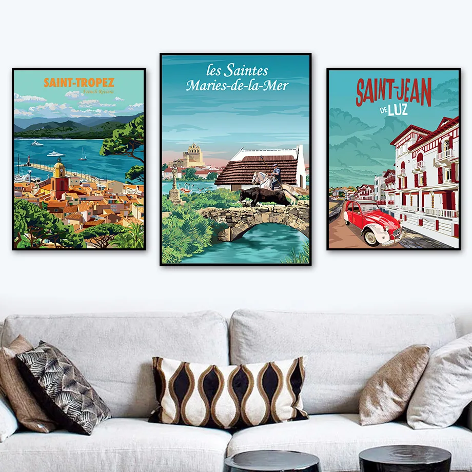 Картина на холсте с изображением французского итальянского винтажного известного города для путешествий, скандинавские плакаты и принты, настенные картины для декора гостиной