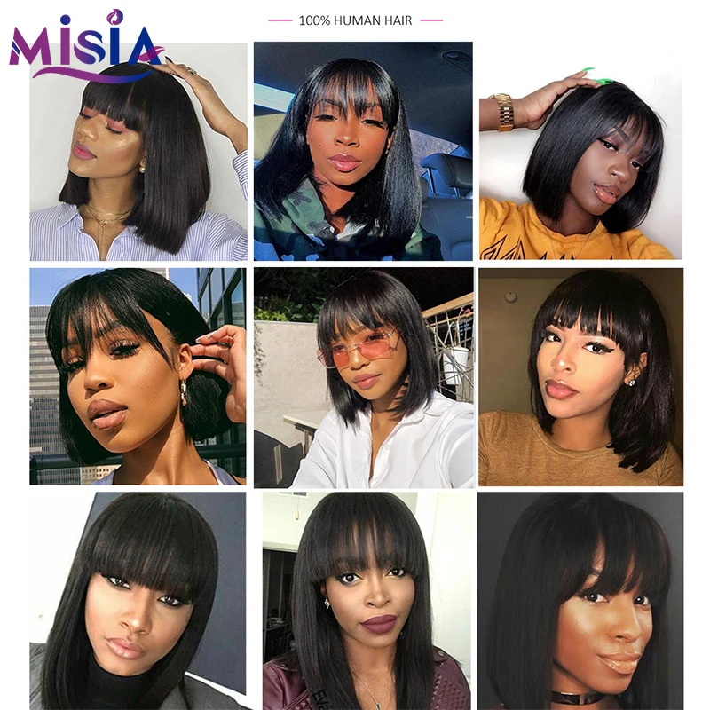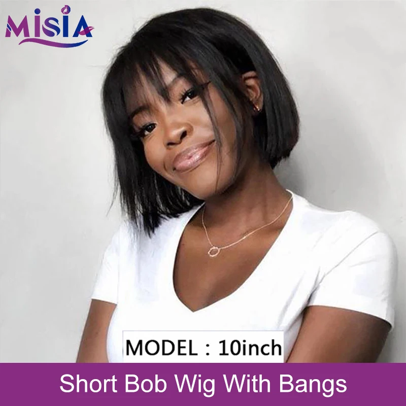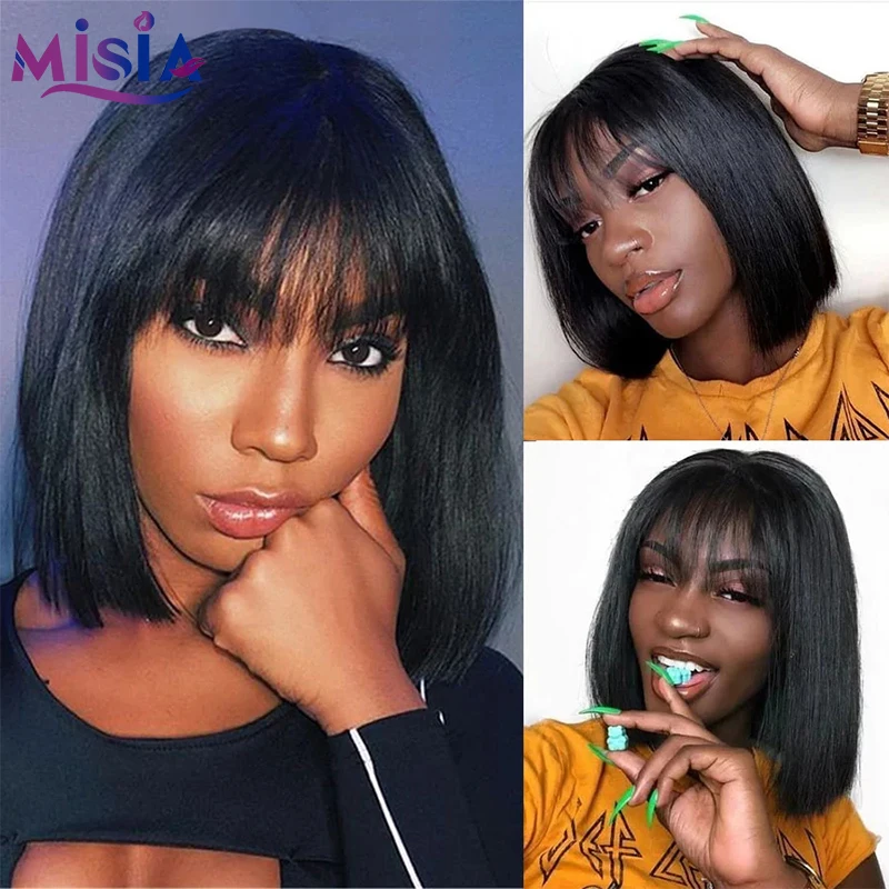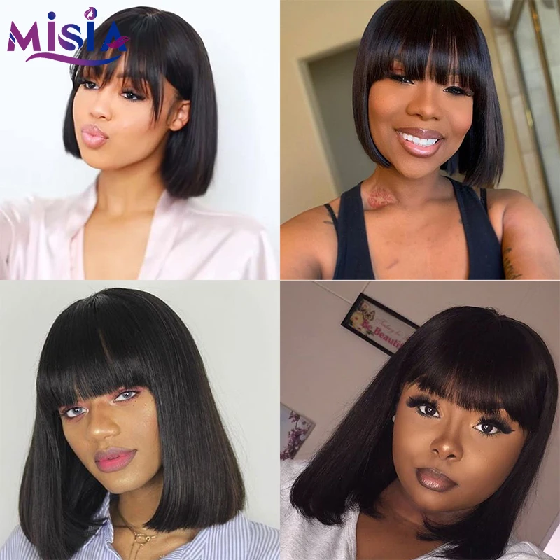 Парик MISIA модный короткий боб с челкой, прямые бразильские волосы, парики для женщин, человеческие волосы, полностью машинное изготовление, дешевые парики из человеческих волос