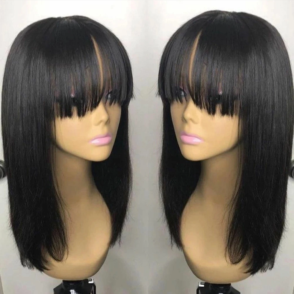 TextureStraight BOB Remy Human Hair Wigs With Bangs