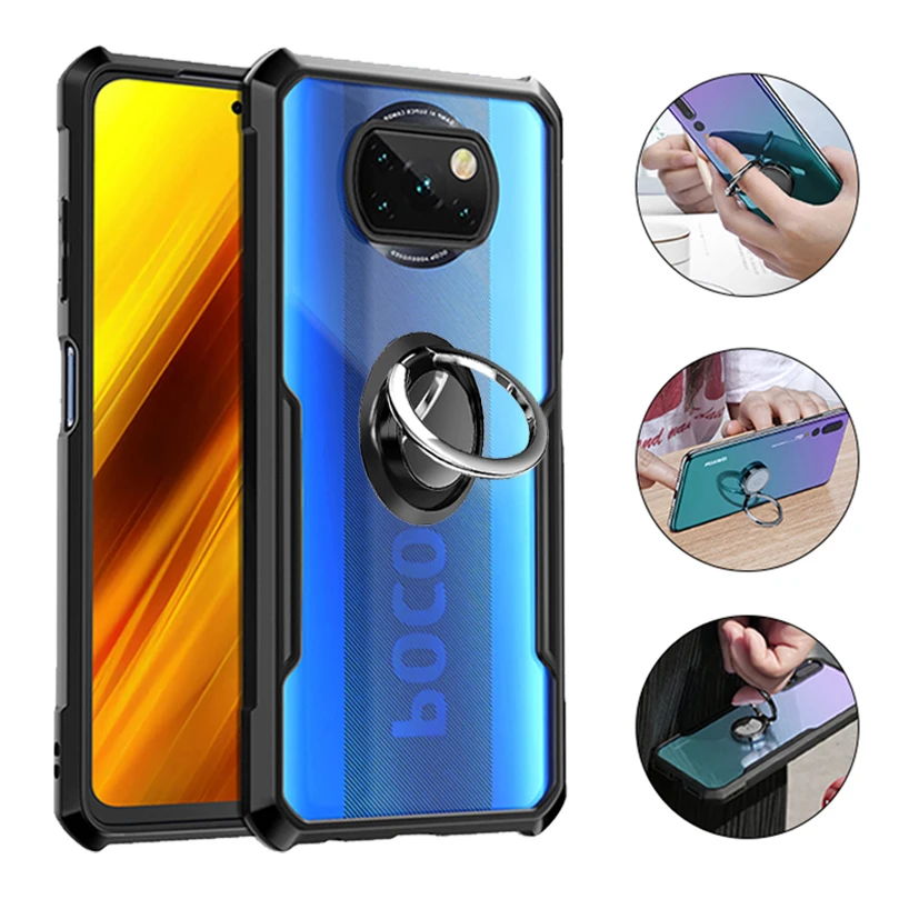 Чехол с кольцом-держателем для Poco X3 Pro, акриловая прозрачная задняя панель + мягкая рамка из ТПУ, противоударный чехол для Xiaomi PocoPhone X3/M3/F3/X3-Pro